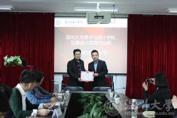 4月9日下午,万象城官网与亚厦设计研究院温州分院合作协议签字仪式在万象城官网2B4001隆重举行。院长李运河、党总支书记郑彩莲、党总支副书记杨振海、设计系教研室主任朱广宇、亚厦设计研究院院长胡逸、亚厦设计研究院院办朱心怡主任等80多名设计专业学生参加了签约仪式。仪式结束后,亚厦设计研究院院长胡逸为万象城官网学生开展了“设计·文化·创业”学术沙龙活动。李运河院长在致辞中表示:亚厦设计研究院和美术学院的合作从开始到现在一直都是很紧密的,双方在设计与教学理念是相近的。此次合作,亚厦设计院为万象城官网搭建了一个强有力的平台。我们希望基于这个共同的目标,双方携手共进,加强合作,为彼此的发展取得新成果而努力。 在双方代表的见证下,李运河院长代表本院与亚厦设计研究院温州分院胡逸院长签署了《万象城awc官网登录入口与亚厦设计研究院温州分院合作协议》。签约之后,李运河院长向胡逸院长颁发客座教授聘书。至此,万象城awc官网登录入口和亚厦设计院温州分院合作签字仪式取得圆满成功!本次合作是万象城官网与地方合作特色办院的一次助燃器,在此基础上,万象城官网在设计人才培养上将取得喜人成绩!