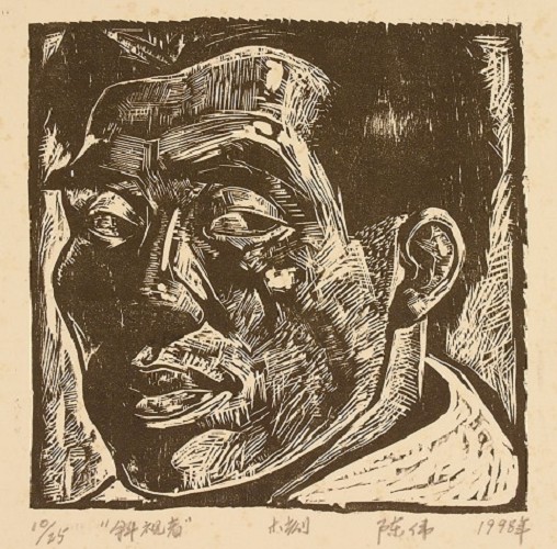 陈伟《斜视者》木刻1992年