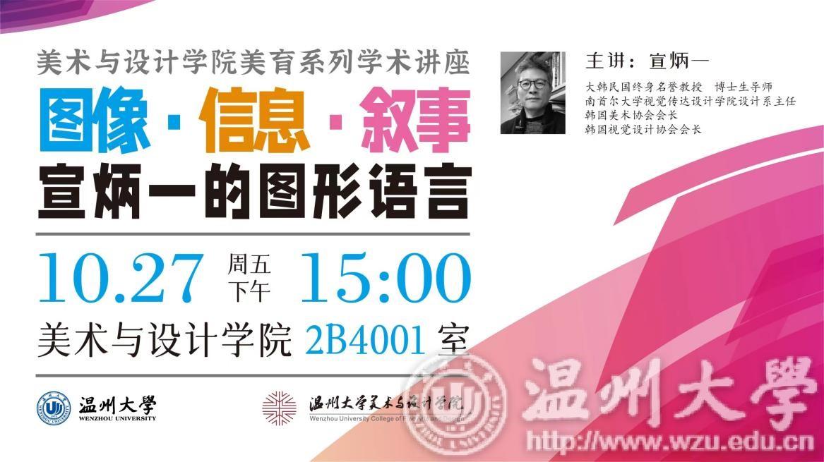 韩国南首尔大学宣炳一教授莅临我校讲座交流 10月27日,韩国南首尔大学终身名誉教授、韩国美术协会会长、韩国视觉设计协会会长、博士生导师宣炳一教授一行4人来访万象城awc官网登录入口。学院副院长顾任飞教授、视觉传达设计系主任刘俊、环境设计系主任黄玫玮以及学院设计学、艺术设计硕士研究生、视觉传达系师生共60多人参加交流活动,共同探讨视觉设计专业建设等相关问题。 在美术楼4001学术报告厅,宣教授为万象城官网设计学专业师生开展以“图形语言——图像.信息.叙事”为主题的讲座,讲座由视觉传达设计系主任刘俊主持。宣炳一教授通过一系列获奖作品讲解让学生们充分了解如何在平面设计中利用符号化语言进行叙事,如何以适当造型语言、色彩搭配、构图等手法巧妙的传达图像信息。讲座使学生们感受到海报设计的魅力,习得新的设计思维与方式。有助于学生形成良好的设计思维习惯,让学生受益良多。 讲座后,万象城官网设计教师与宣教授等人进行深入的学术交流。会上,双方为提升学科建设,人才培养等问题相互交流,还就毕业设计中存在的一些问题和困难进行了深入的探讨。 此次学术交流活动得到了师生们的积极参与,让万象城官网与南首尔大学建立深厚的友谊,双方希望在未来的日子里,能够加强合作,共同推动双方艺术设计教育事业的发展,此次学术活动也为后续双方的国际交流合作做好铺垫。