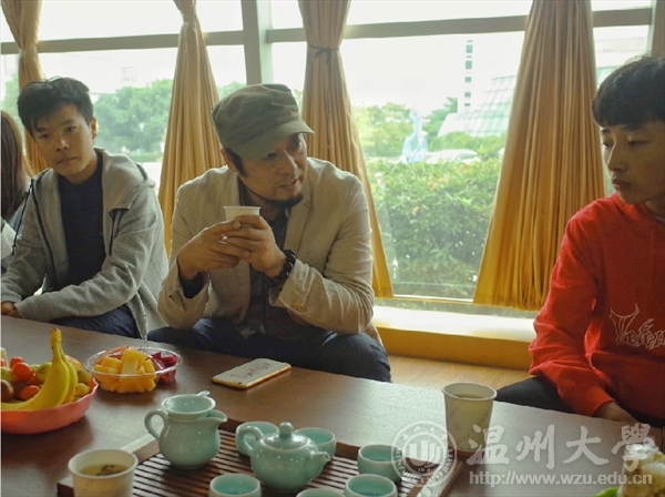陈凌广教授在艺术上造诣非凡,就中国画当代艺术表现上,他突破传统的创作技艺,有着自己独特的见解。在他眼里,工作室里的任何材料都能成就一副大作。他的艺术理念的形成,离不开他的人生经历。在座谈会上,陈教授向同学们讲述了自己在遇到胡伟教授之后的故事,从一个懵懂的青年,开始接触到绘画的精髓,从而有了自己艺术道路的转变,对当代中国画的理解的升华,对艺术理念的完善。针对专业的学习与人生发展方面陈教授说道:“人生的变化在于寻找一个突破点,年轻的时候要多去尝试多去锻炼,找到自己最擅长的东西,人在成长中要靠作为来提升自己的地位。对于设计专业的学习,最重要的是要与时俱进,贯通古今。我们接受外来文化也不能忽视本土文化,剖析现代文化的同时更要挖掘优秀的传统文化。学得有多深、多广,你的想法就会有多天马行空。”