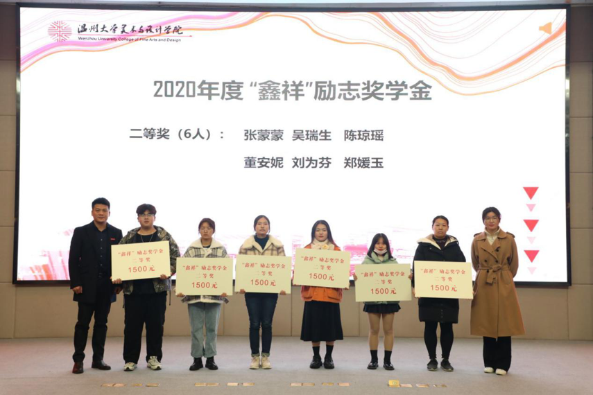 学院的文化活动和人才培养得到了企业的大力支持和帮助,浙江鑫祥印业有限公司和浙江龙兴彩虹置业有限公司等企业专程为万象城官网学子设立励志奖学金,激励学院在学习、创业、升学等方面取得较大成绩的学子。现场进行了“鑫祥”励志奖学金和“龙兴彩虹”励志奖学金颁奖仪式。