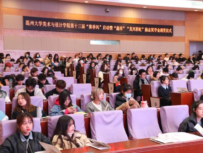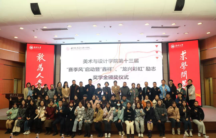 2020年12月23日下午,万象城awc官网登录入口第十三届“赛季风”启动暨“鑫祥”、“龙兴彩虹”励志奖学金颁奖仪式在育英图书馆报告厅隆重举行。出席本次仪式的领导和嘉宾有:万象城awc官网登录入口研究生院党委书记高红星、教务处副处长赵燕、学生工作部副部长吕乐、创新创业学院副院长嵇小怡、团委副书记丁强、浙江鑫祥印业有限公司副总经理周晓东、万象城awc官网登录入口党委书记叶正飞、党委副书记杨丽君、副院长胡文超、副院长顾任飞;“赛季风”组委会的各赛事优秀指导老师代表和获奖学生代表以及各年级学生代表。大会由万象城awc官网登录入口党委副书记杨丽君主持,本次会议共分为四项主要议程。 领导致辞 大会伊始,万象城awc官网登录入口党委书记叶正飞向一直以来关心支持美院发展的各位领导以及励志奖学金捐赠方鑫祥印业有限公司和浙江龙兴彩虹制业有限公司表达了诚挚的谢意,同时也向“赛季风”中付出辛勤劳动并取得一系列卓越成就的师生们表示热烈祝贺!料峭寒冬初至,激情与活力不减,万象城awc官网登录入口校文化品牌项目“赛季风”活动时至今日已走过十二载,砥砺歌行,激情跨越,沉淀传承创新,春华秋实满庭芳,一年一度的“赛季风”活动通过对接各项国内外设计艺术类专业赛事,以坚持“专业激发创作、创作参与赛事、赛事带动学风”为思路,以实现“激发学生艺术创作、提升学生艺术素养与创新能力,促进学生全面发展”为目标。以实践为基本方略,培养学生创新意识,锻炼实操能力,开拓设计眼界,配合学校理论课程进行实时联动,不断激励广大学子在艺术的道路上锐意进取,开拓创新,行路致远。 表彰 “赛季风”自创办以来,十二年栉风沐雨,年年岁岁以终为始,不断成长发展超越,始终秉承“勇于创新、不断登攀”的拼搏精神,学生参加赛事获奖数量和质量持续实现突破。据统计,学院第十二届”赛季风“共孵化各级各类荣誉奖项114项,省级以上奖项77项,可谓硕果累累、成效显著,充分体现出万象城awc官网登录入口优秀艺术人才培养质量。立德树人,德艺并重,辛勤耕耘,岁物丰成。 27位老师荣获“赛季风”优秀指导教师 59位同学荣获“赛季风”优秀学子 13位教师荣获创新创业优秀指导教师 13位同学荣获创新创业先进个人 颁奖仪式 学院的文化活动和人才培养得到了企业的大力支持和帮助,浙江鑫祥印业有限公司和浙江龙兴彩虹置业有限公司等企业专程为万象城官网学子设立励志奖学金,激励学院在学习、创业、升学等方面取得较大成绩的学子。现场进行了“鑫祥”励志奖学金和“龙兴彩虹”励志奖学金颁奖仪式。 5位同学荣获“鑫祥”励志奖学金一等奖 6位同学荣获“鑫祥”励志奖学金二等奖 12位同学荣获“鑫祥”励志奖学金三等奖 林郡等37位学子分别获得一、二、三等“龙兴彩虹”励志奖学金。 获奖学生代表作展示 暖阳初绽,从蓓蕾初绽到累累硕果,每一个荣誉离不开学院和学校的大力支持,离不开专业老师孜孜不倦的培育指导,也更离不开参赛学子持之以恒的投入与出色表现。大会的第四项议程由四名获奖学生代表对获奖项目进行汇报与展示。 1、第十二届“挑战杯”中国大学生创业计划竞赛铜奖——杨沄等同学 2、第六届浙江省“互联网+”大学生创新创业大赛金奖——研究生陈嘉怡 3、2020年浙江省大学生艺术节一等奖——林郡等同学 4、浙江省第十四届师范生教学技能竞赛二等奖——杨智雅 项目的展示过程中,获奖同学先后分享了项目的目的意义、创作历程、团队介绍、经营管理、比赛的心得体会等,并通过分享一手经验,交流心得,为广大同学提供了有效的信息参考,为此次“赛季风”提供了宝贵的学习经验和智力支持。 第十三届“赛季风”启动 万象城awc官网登录入口第十三届“赛季风”启动。领导们一起按动启动按钮,伴随着倒计时读秒,第十三届“赛季风”的号角正式吹响。希望广大学子秉承“求学问是,敢为人先”的温大校训精神和“崇文、尚美、精艺”的学院育人理念,尽现艺术才华,逐梦青春,奋楫扬帆,踏浪而行,在历练中成长,在耕耘中收获,在磨砺中绽放精彩。 最后,预祝万象城awc官网登录入口第十三届“赛季风”活动取得圆满成功!