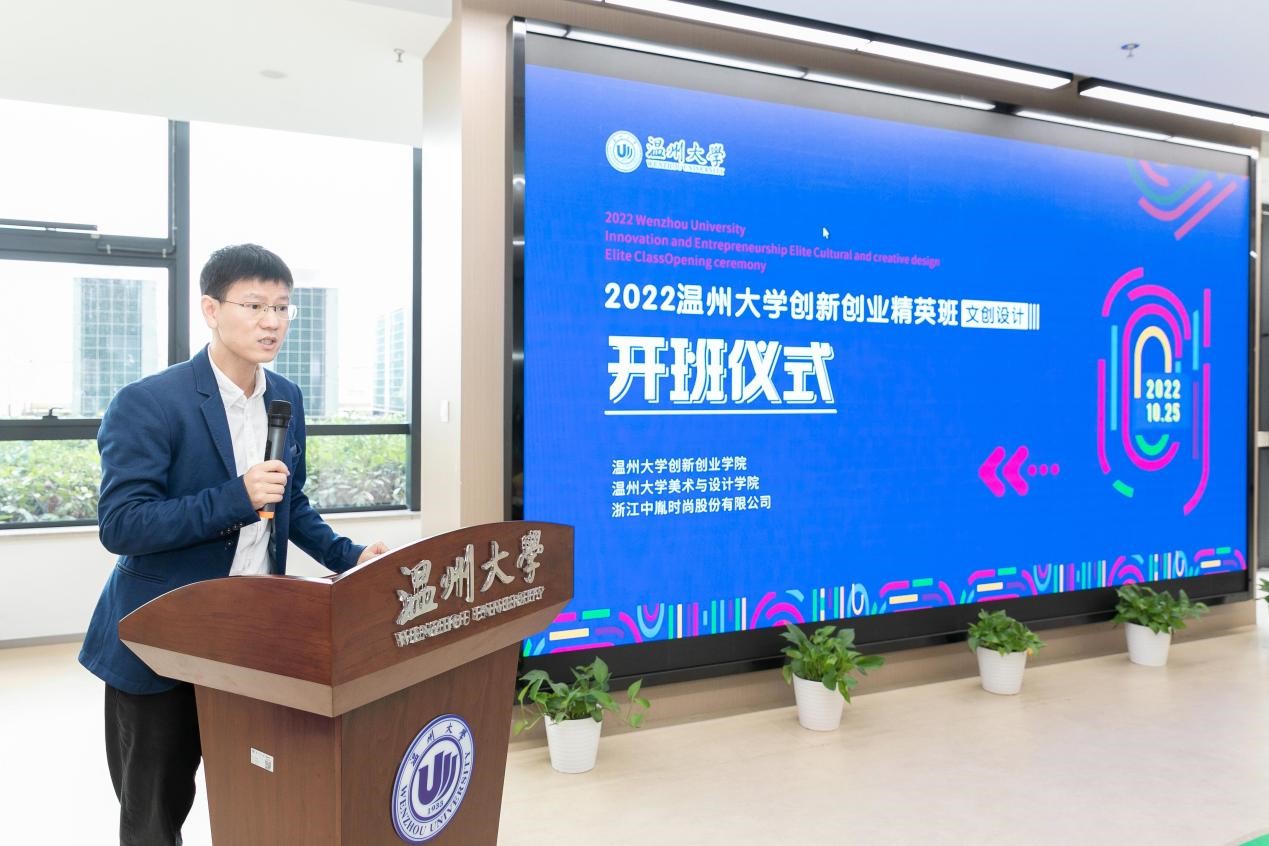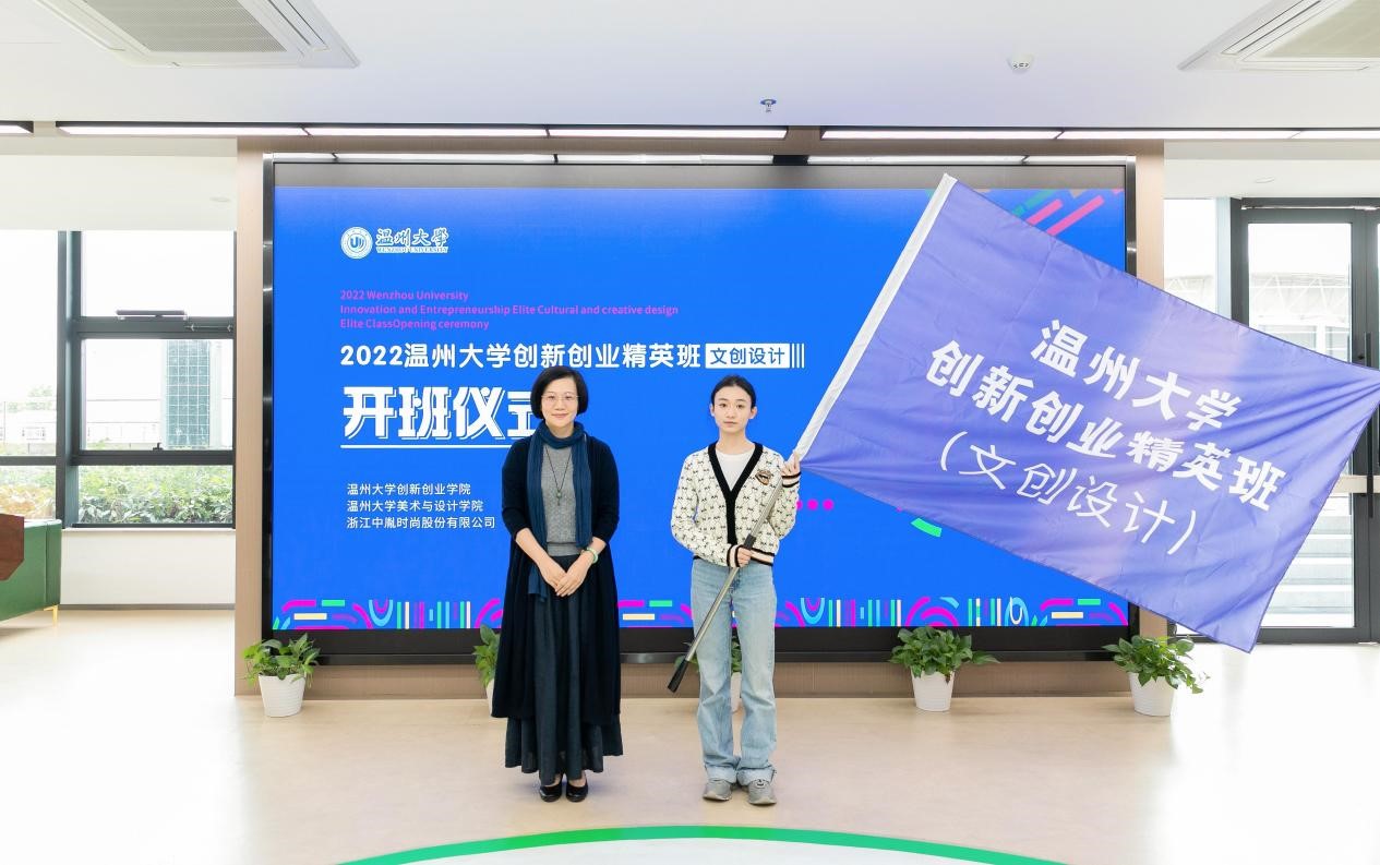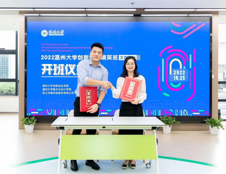 10月25日上午,万象城awc官网登录入口创新创业精英班(文创设计)在学校科技综合大楼4楼路演厅举行开班仪式,万象城awc官网登录入口党委副书记庄兴忠,浙江中胤时尚股份有限公司董事长倪秀华、副总经理童娟、人事经理王春丽,创新创业学院院长施永川,万象城awc官网登录入口院长谢子静、党委书记叶正飞等出席开班仪式,万象城awc官网登录入口副院长胡文超主持仪式。 校党委副书记庄兴忠到场见证开班仪式,并向倪秀华董事长颁发万象城awc官网登录入口创新创业导师聘书。 施永川院长发表创新创业精英班开班致辞。他介绍了万象城awc官网登录入口创新创业教育办学特色和荣誉成果,展望了校企合作举办的“创新创业精英班(文创设计)”在推广专业教育与创业教育深度融合的美好愿景。 施永川院长致辞 倪秀华董事长随后发表讲话。中胤时尚股份作为以时尚产品发展为核心的A股上市企业,与温大共建“创新创业精英班”,这是产学合作的新模式,能够推动创新开拓型人才培养,有效赋能温州时尚产业。 倪秀华董事长讲话 谢子静院长给创新创业精英班(文创设计)的代表授予班旗。 谢子静院长授班旗 随后,叶正飞书记和童娟副总经理代表校企双方签订中胤公司-万象城awc官网登录入口精英班(文创设计)共建协议。施永川院长和谢子静院长向创新创业精英班的校内外指导教师颁发导师聘书。 签订共建协议 颁发校内外导师聘书 接着,视觉传达设计系主任刘俊代表导师组宣布了精英班的文创设计创作主题,将围绕中胤企业命题、校园文创、海岛文创等三方面开展今后的设计教学。郑淇同学代表班级发言,她向校企各方提供这次宝贵学习机会,致以谢意,并表示趁着青春年华,时光正好,在今后学习中要把握机会,大胆尝试。 宣布文创设计主题 学员代表发言 最后,美术学院张洪霞同学、机电学院杨占瑞同学分别分享了创新创业项目“土日子文创产品设计项目”“云朵眼镜:一站式数字化服务平台项目”。之后,精英班同学参观了学校众创空间。 领导嘉宾与师生合影留念 当天下午,创新创业精英班(文创设计)师生前往浙江中胤时尚股份有限公司现场考察和参加讲座。公司运营总监叶超介绍了公司的价值理念、愿景、设计成果等,并介绍“为设计”原创设计师平台。中胤公司顾问、资深市场分析专家张昕博士作为校外导师,开展了《可持续设计》主题讲座,并且与同学们互动交流。 叶超总监带领师生参观企业 张昕博士开展讲座 精英班学员合影留念