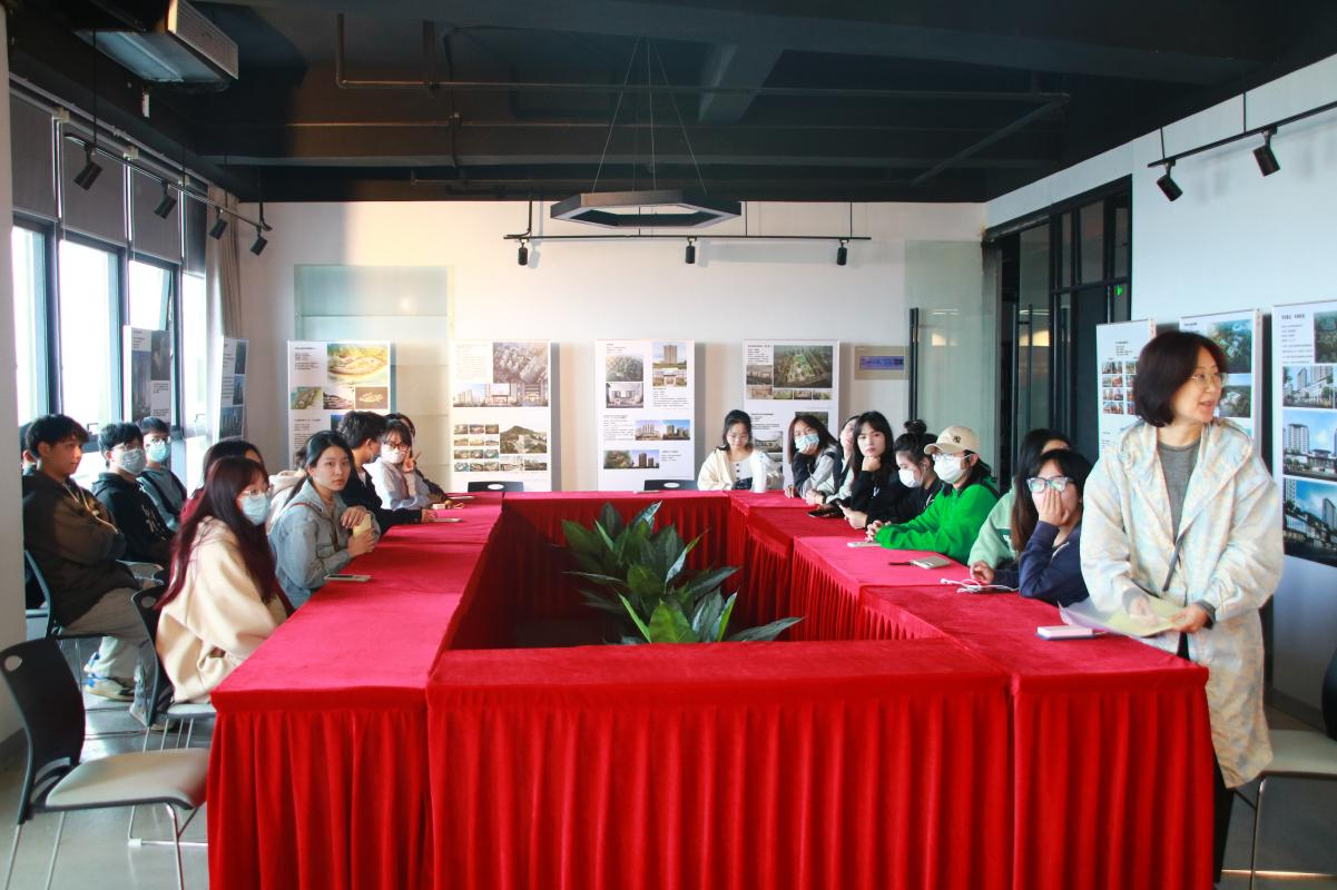 2022年11月7日万象城awc官网登录入口和温州新创规划建筑设计有限公司举行“校外实践基地”交流座谈会。万象城awc官网登录入口环境设计系主任黄玫玮老师、20级环境设计1班全体同学,温州新创规划建筑设计有限公司创始人林东海先生及公司设计师团队共同参加,举行了校外实践基地的交流会。