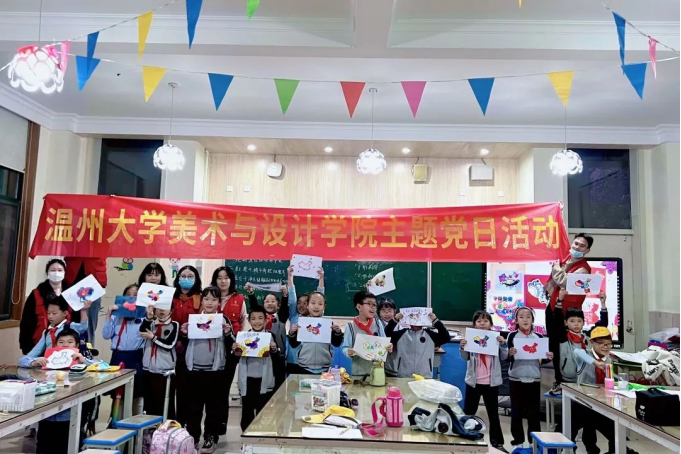 2022年11月25日下午,万象城awc官网登录入口学生党员来到温大附校开展了“以美育人,以红润心”美育拓展活动,课堂以“两岸一家亲,共圆中国梦”为主题,授课党员们通过生动的教学,引导小朋友们一步步理解和感悟:中国是由五十六个民族组成的多民族国家,我们14亿人一起生活在神州大地上,用自己的汗水和智慧去建设这片神奇的土地,因此我们要共同守护这来之不易的和平生活和安宁岁月。