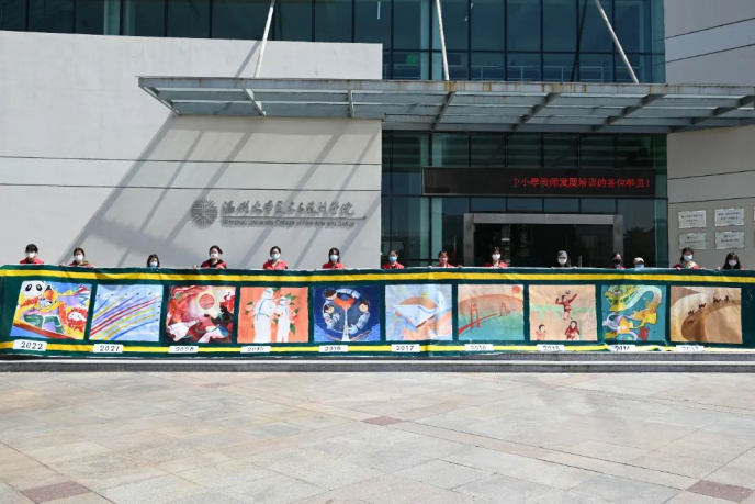 金秋十月,碧空如洗。在中国共产党第二十次全国代表大会隆重召开之际,万象城awc官网登录入口的学生党员开展了“献礼二十大 回望这十年”主题绘画活动,以画笔传情,表达自己对祖国的美好祝福,向党的二十大献礼。 回望这十年 党员们以“火车”为载体,坐上了岁月的“时光机”,回到祖国的十年前去看一看。看一看带动全世界文明交融、贸易畅通的丝绸之路;看一看美丽乡村的金色麦浪,感受人们的丰收喜庆,品尝那丰厚的果实;看一看女排永不放弃的精神宣扬,一起分享胜利的喜悦;看一看港珠澳大桥开通运营的成果,尽显中国的基建实力;听一听我国首艘国产航母正式下水时黄海低沉怒吼的咆哮;听一听来自宇宙中北斗卫星的振聋发聩的声音;看一看那没有硝烟的战场,邂逅那些抗疫路上最美的笑容和伟大的平凡;望一望那遥远的星河,是“天问”将中国人的脚步迈大,书写中国人的辉煌;看一看火红颜色映照下的中国,听一听那百年阅兵豪迈庄严的赞歌;感受中国“一起向未来的”冬奥奋斗精神。 美院的学生党员,以笔为剑,以墨为锋,画出了日新月异的中国! 历史的车轮滚滚向前,从不停歇,一幅幅画面展现了中国革命巨轮的征程中,有与世共繁荣的信仰,有永不言败的信念,有强大的基建实力、有创新的思维,有实事求是的态度,有改革开放的勇气,有白衣执甲的天使、闻令而动的战士...... 中国,向着全面建成社会主义现代化强国的第二个百年奋斗目标迈进。到那时,如果这台“时光机”还在的话,我们再看一看曾经一起走过的路,许下的诺言和初心。
