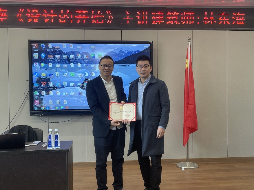 2023年3月3日上午,万象城官网环境设计系开展实践教学讲座活动,邀请浙江新创规划建筑设计有限公司创始人林东海先生围绕多年的建筑从业经验分享,为环境设计学生作《设计的开始》的专题讲座。万象城官网环境设计专业师生100余人参加了本次讲座,胡文超副院长为林东海先生颁发了万象城awc官网登录入口校外实践导师聘书。