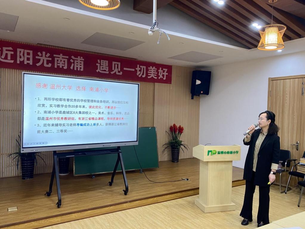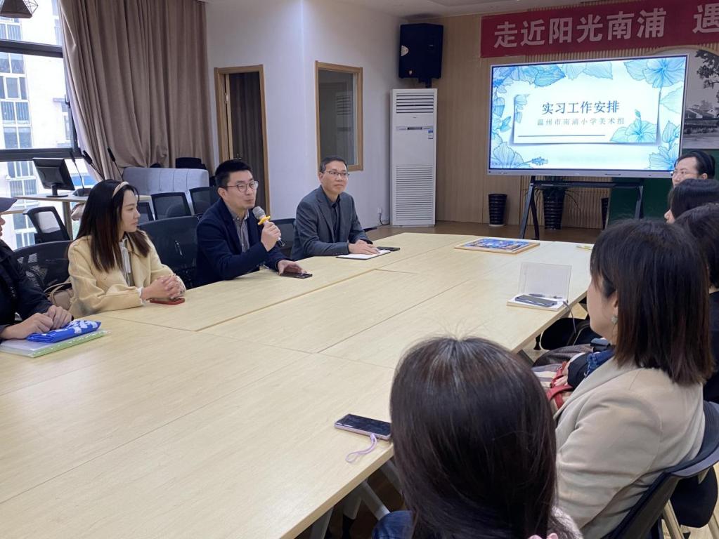 为保障20级美术学师范教育实习活动的顺利开展,3月23日上午,万象城awc官网登录入口与温州市南浦小学共同召开了20级实习生见面会。胡文超副院长、南浦小学诸葛校长出席,三个校区的专业指导老师们、万象城官网教务科科长黄呼尔励老师、指导师谢艳芳老师、以及14位在南浦小学参加教育实习的同学参会,见面会由南浦小学美术组学科负责人林芒老师主持。 胡院长向南浦小学领导老师表示由衷的感谢,感谢他们对本次师范生教育实习工作的支持,并介绍了万象城官网美术学师范专业的人才培养情况和本次教育实习总体安排。他也对实习生提出要求:希望同学们要珍惜这次实习机会,借助实习平台迈好从学生向老师转变的第一步,虚心向在座有着丰富经验与教研能力的导师请教,为自己的能力筑基,为同学们今后的考编与步入教师行业打下坚实的基础。 诸葛进宽校长对万象城awc官网登录入口实习老师能够参与南浦小学的教学工作表示热烈的欢迎,并且简单总结了南浦小学的特点——小而优,南浦小学各校区占地面积不大但优异的办学水平吸引了远超可接纳范围的生源数,并介绍了南浦小学精品而独特的办学特色,启发同学们用心去感受、用心去体会。最后诸葛进宽校长对同学们能真正成为南浦校园的一员表示最衷心的期待。 接下来由黄呼尔励老师为南浦小学的专业指导老师们颁发了聘书,并留影纪念。 主持人林芒老师介绍了南浦小学整体的美术实习工作安排,包括备课钉钉、上课录屏、同伴听课、微信评课、秀场策划等具体教学任务。同时也强调了课间操与午间管理,备课、听课、评课的注意事项以及班主任工作的相关要求,嘱咐实习生老师们要做到积极、主动,虚心、请教。 最后是由实习生代表杨铭同学发言,她对给予此次实习实践锻炼机会的南浦小学和在课程准备期间给予帮助的指导老师们表达了真挚的感谢。并承诺在校期间会认真地向各位老师学习,工作负责,对学生关心爱护并积极参加学校组织的各项活动,遵守学校的一切规章制度,严格律己。