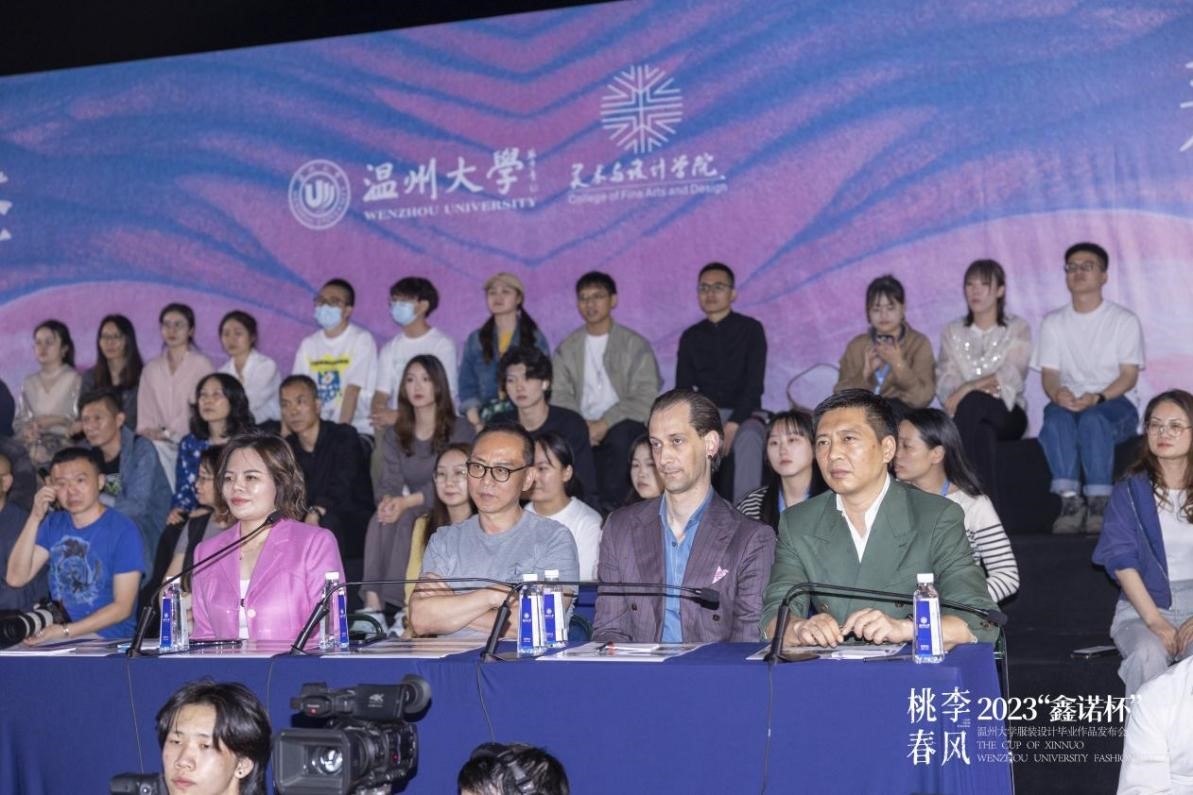 本次发布会邀请了四位重量级评委,他们是海宁鑫诺服饰的董事长刘军先生和浙江中胤时尚股份有限公司的董事长倪秀华女士,意大利欧洲设计学院的教授兼时尚设计师的菲利波·斯特拉达先生,还有温州服装商会的秘书长陈琦翔先生。