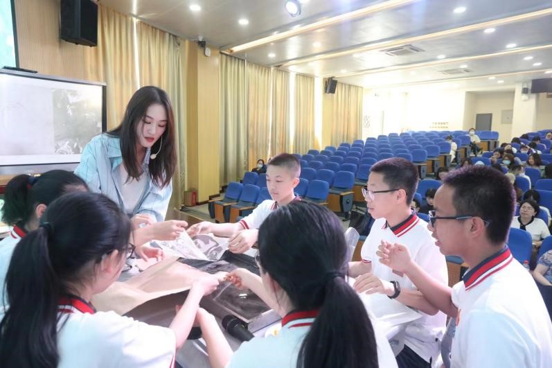 2023年5月29日下午,万象城awc官网登录入口20级美术学(师范)实习总结汇报会在温州第二实验中学举行,万象城awc官网登录入口苏步青学院党委书记应中、执行院长姜锐、万象城awc官网登录入口副院长顾任飞、万象城awc官网登录入口教师培养基地主任胡珏等领导和嘉宾,来自温州第二实验中学、温州第二外国语学校、温州市第十二中学、温州市第十九中学、温州南浦实验中学和温州梧田第一中学的校外导师,万象城awc官网登录入口全体实习导师,以及20级、21级本科生、学科教学(美术)研究生共196人参加汇报会。会议由第二实验中学的楼林子老师主持。 活动伊始, 各位嘉宾、老师进行了合影留念,随后顾任飞副院长、胡珏老师对嘉宾的到来表示热烈欢迎,对各位指导老师给予的精心培养表示感谢,同时也肯定了20级实习生在实习过程中的付出。 第一节展示课是由温州第二实验中学实习生代表叶佳慧带来的自编课程《水之道》-梨园风骨寄丹青。课堂以水袖舞作为导入,整堂课的氛围充满中华古典韵味,将水袖与国画水墨纹理相结合,将水拓作品与戏曲人物进行联想创作,让大家眼前一亮。 第二节课是由温州南浦实验中学实习生代表姜景皓带来的七年级课程《北京故宫—千里江山图》。课堂以视频方式导入,带同学走进画中世界,老师从多角度讲解分析画作,让流行音乐与古画韵律相结合,碰撞出了不一样的火花。 第三节课由温州第二外国语学校实习生代表沈晔同学,为我们带来了以纸为载体的立体构成课程《纸构成》。课堂开始让学生自由将手中的纸进行立体设计,用最短的时间感受到了纸的材质体验。这节课通过纸张表现韵律,并与生活中建筑设计、大自然景观等相结合,让学生对立体构成抽象的概念有了直观的理解,更让学生感受到生活中艺术无处不在! 汇报课结束之后,胡建南老师、林川老师进行了现场评课,两位老师对各位实习老师的汇报表示肯定,同时也提出了需要改进的地方。 随后,初中组实习生代表姚敏敏同学对此次实习汇报进行了总结以及对各个学校表示衷心的感谢,并通过一段段生动活泼的记录向大家展示了近两个月来实习生活的点滴。 汇报会最后,20级实习生们向指导老师们献上了精心准备的礼物以表达感谢,并且与老师们进行了合影留念,本次实习汇报也落下了帷幕,愿温大美院学子不忘初心,砥砺前行,愿其前程似锦,未来可期!