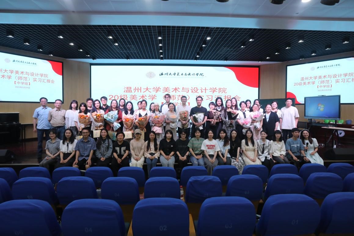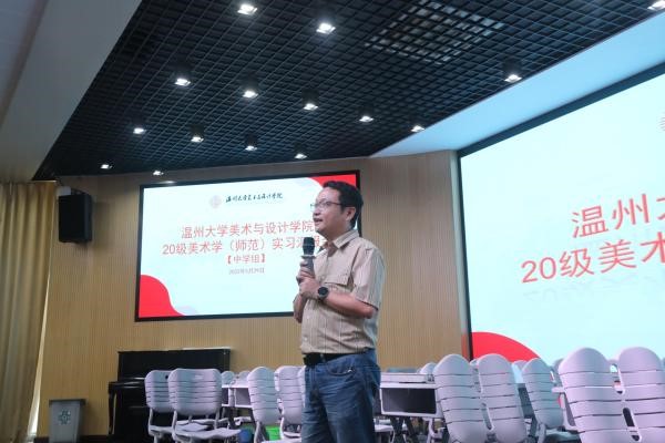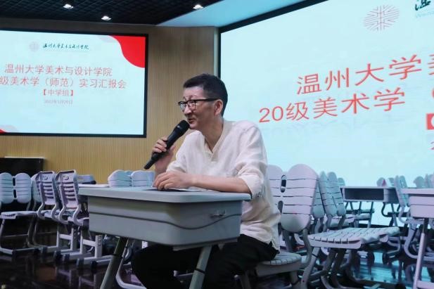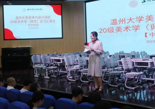 2023年5月29日下午,万象城awc官网登录入口20级美术学(师范)实习总结汇报会在温州第二实验中学举行,万象城awc官网登录入口苏步青学院党委书记应中、执行院长姜锐、万象城awc官网登录入口副院长顾任飞、万象城awc官网登录入口教师培养基地主任胡珏等领导和嘉宾,来自温州第二实验中学、温州第二外国语学校、温州市第十二中学、温州市第十九中学、温州南浦实验中学和温州梧田第一中学的校外导师,万象城awc官网登录入口全体实习导师,以及20级、21级本科生、学科教学(美术)研究生共196人参加汇报会。会议由第二实验中学的楼林子老师主持。