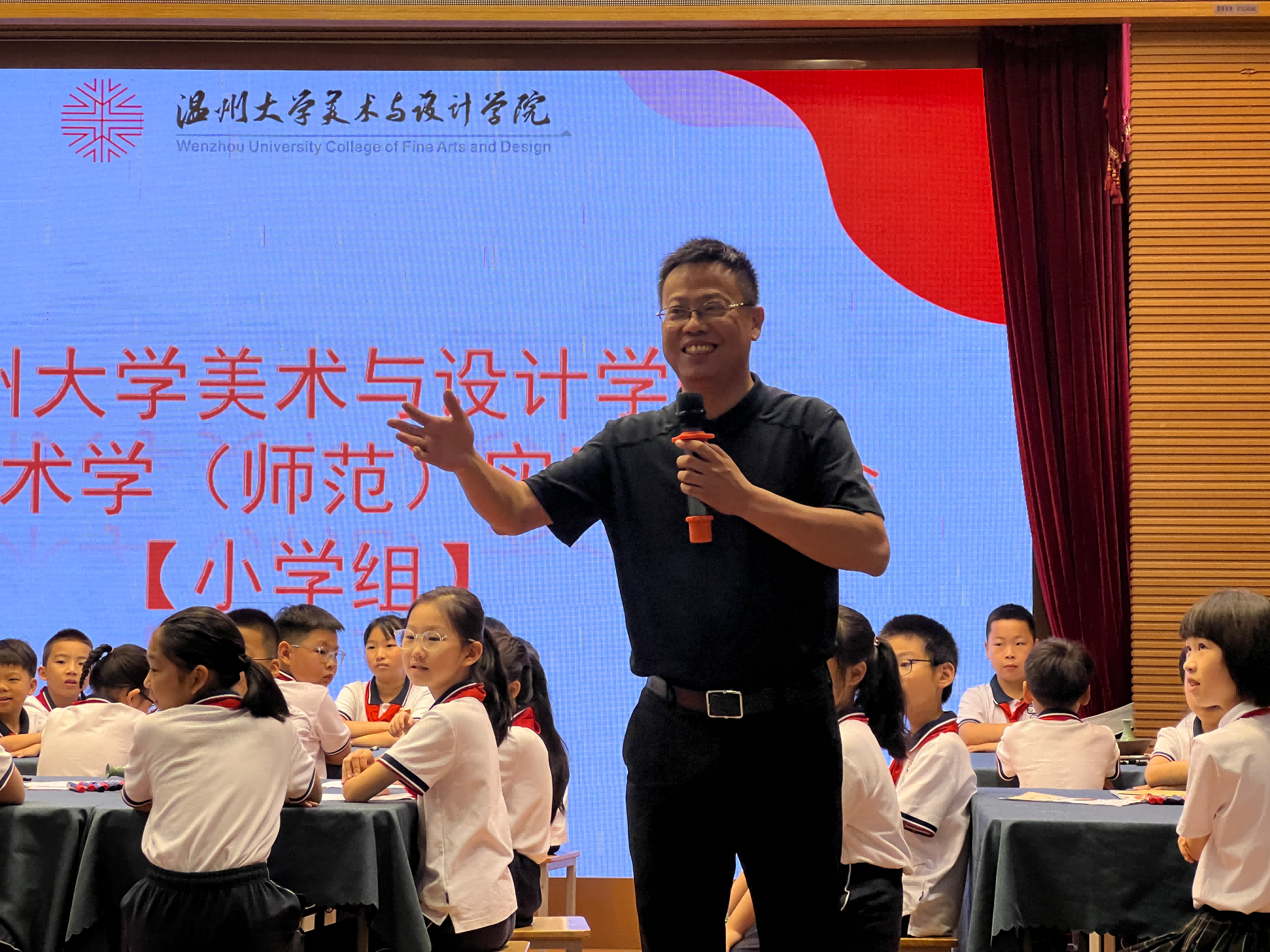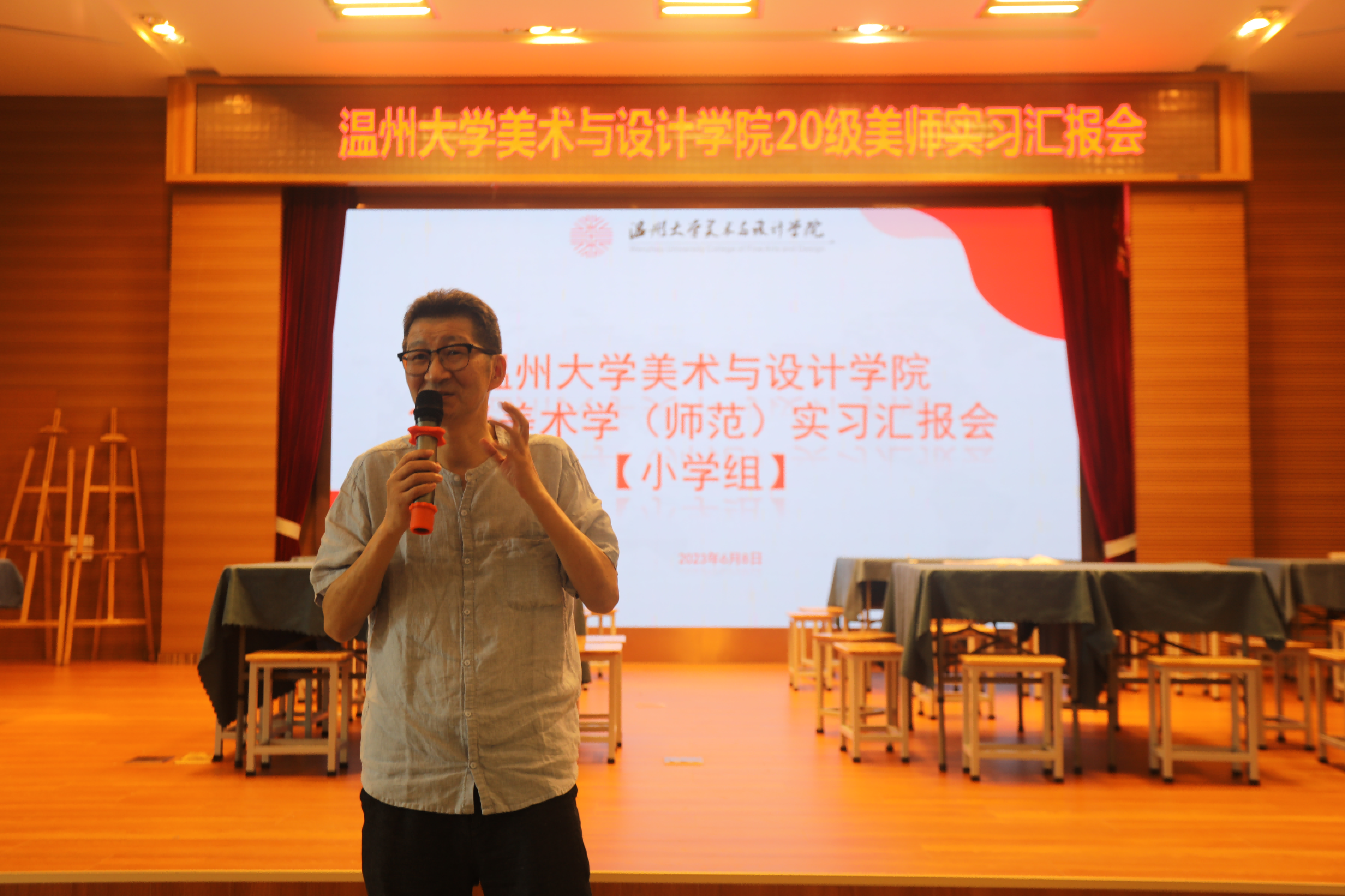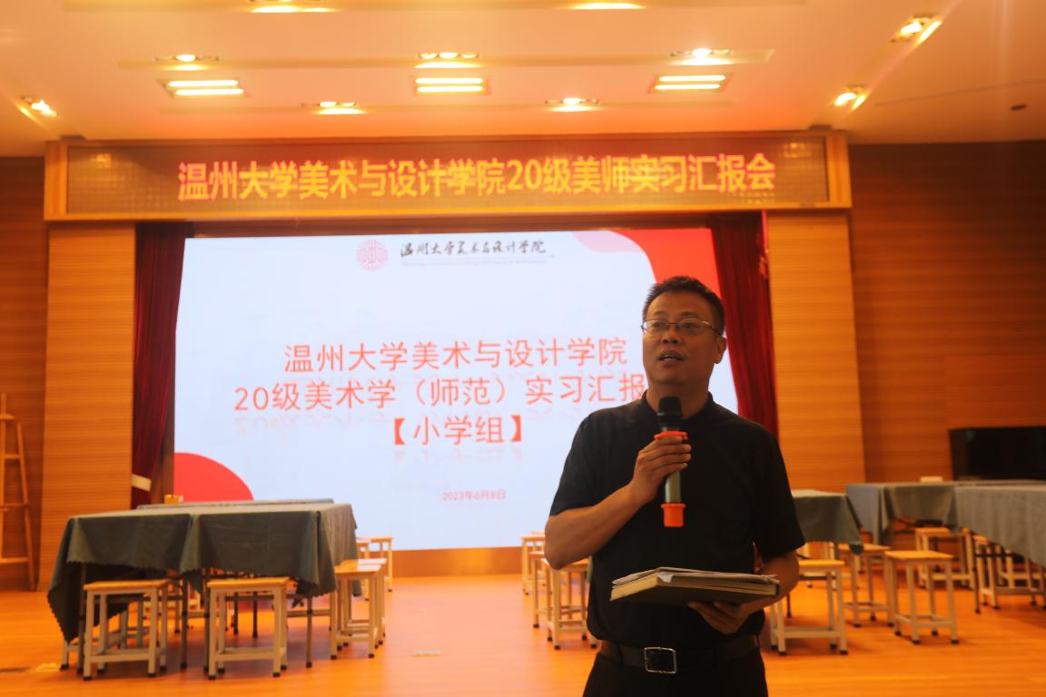 6月8日,万象城awc官网登录入口美术学(师范)专业2020级教育实习汇报会·小学场在马鞍池小学报告厅准时召开。万象城awc官网登录入口副院长胡文超、温州市马鞍池小学校长林大康、美院实习导师胡建南、黄良珽、楼晓勉、谢艳芳、陈昭庭、王晶等老师,以及籀园小学、马鞍池小学、南浦小学各校区的指导老师,2020级美师专业的全体本科生、研究生出席了本次大会,大会由20级美师2班黄章铭、姚子昂主持。