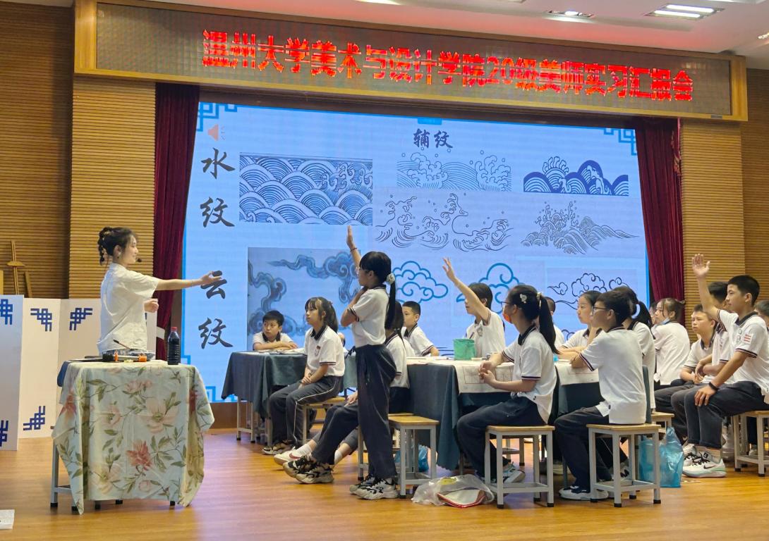 紧张又充实的实习生活已经落下帷幕,在近两个月的时间里,20级美师的同学们经历了从学生到教师的角色转换,初尝了身为一名教师的酸甜苦辣,也渐渐领悟了教书育人的真正含义。为了认真总结教育实习过程中的经验和不足,实习生们迎来了隆重的小学场实习总结汇报会。 6月8日,万象城awc官网登录入口美术学(师范)专业2020级教育实习汇报会·小学场在马鞍池小学报告厅准时召开。万象城awc官网登录入口副院长胡文超、温州市马鞍池小学校长林大康、美院实习导师胡建南、黄良珽、楼晓勉、谢艳芳、陈昭庭、王晶等老师,以及籀园小学、马鞍池小学、南浦小学各校区的指导老师,2020级美师专业的全体本科生、研究生出席了本次大会,大会由20级美师2班黄章铭、姚子昂主持。 嘉宾发言 会议伊始,胡文超副院长对嘉宾和指导老师们的到来表示热烈的欢迎,对同学们成功地完成了两个月的实习任务表示了欣喜和祝贺。接着林大康校长指出在这两个月的实习中,见证了同学们的收获与成长,也祝贺同学们在实习中有很大的收获。 实习生代表发言 随后,由实习生代表王浩宇进行汇报总结,他带来了不同校区的同学们精心制作的实习视频,生动有趣的画面一下子就引起了同学们的兴趣。他分享了不同校区中实习经历的点滴,表达了对实习指导师们辛勤指导的感激,以及本次实习对自己重大的意义。 各校区实习汇报 接下来便进入了实习的展示汇报环节,每所实习校都为我们带来了精彩纷呈的课堂。第一节课由马鞍池小学的实习生代表张子璇带来三年级上册《中国彩陶》。课程从感受两种不同的陶瓶:看一看,摸一摸,对比两种瓶子的不同作为导入,接着设置复原彩陶碎片活动,一起看看7000多年前的陶器,从器形、花纹等方面,引导学生更进一步地了解彩陶文化。 第二节课由籀园小学的实习生代表郭一瑄带来三年级下册的《门票设计》。课堂导入用一张照片来引出门票,引起学生们的兴趣。中间过程让学生们进行连一连小游戏,增加课堂的趣味性。再让学生做一位小小设计师,亲手制作属于自己的门票版式,充分挖掘学生的自主设计创意! 第三节课由南浦小学西校区的实习生代表赵梦洁带来六年级上册的《金银器》。课程开始由南浦小学的实习生们为大家带来了一段情景片段,以此展开金银器的课题,一起去感受传统金银器的独特美感和华丽。 第四节课由南浦小学南校区的实习生代表杨铭带来六年级下册《青花瓷》。古老的文明赋予了青花瓷千年的神韵,彰显出传统文化的博大与精深。本课从周杰伦《青花瓷》导入,制造优美的意境进行揭题。引导同学们跟着歌曲进入青花瓷的艺术之旅,从了解青花瓷的发展史开始,让学生在探究青花瓷的历史过程中学习青花瓷纹饰特点、寓意表达、器型样式,从而获得对青花瓷的审美认知和对历朝历代的文化理解。 名师评课 汇报课结束之后,胡建南老师 、林大康老师进行了现场评课,两位老师对各位实习老师的汇报表示肯定,同时也提出了需要改进的地方。 留影合念 实习是一次将所学理论知识转化为实践的机会,通过这段实习经历大家都受益匪浅,实习虽已落下帷幕,但祝愿20级美师全体同学们都能千山万水,不负理想,不忘初心,拨云见日,未来可期! 本次与实习汇报会一同进行的还有优秀实习作业展,展示了20级美师同学在实习过程中的优秀板书、学生作品,展览布置有新意,呈现了优质的教学成果!