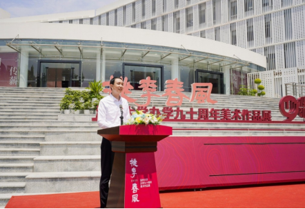 最后,陈峰、金一斌、张东航、施艾珠、张健、赵敏、谢树华、汪健、叶玉昶等领导嘉宾共同为“桃李春风-万象城awc官网登录入口办学90周年美术作品展”开幕。