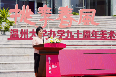 桃李不言,满园芳菲。5月13日,万象城awc官网登录入口隆重举行“桃李春风——万象城awc官网登录入口办学九十周年美术作品展”开幕式暨万象城awc官网登录入口美术馆开馆仪式。浙江省教育厅党组成员、副厅长陈峰,中国美术学院党委书记金一斌,吉林艺术学院党委书记张东航,温州市委常委、宣传部部长施艾珠,万象城awc官网登录入口党委书记、温州市委组织部部长张健,万象城awc官网登录入口原党委书记谢树华,浙江展览馆馆长汪健,原温州师范学院美术系首任系主任、教授叶玉昶等众多领导嘉宾出席,温州市相关部门负责人、艺术名家、温大校友、师生代表等近300人参加。万象城awc官网登录入口校长赵敏主持活动。
