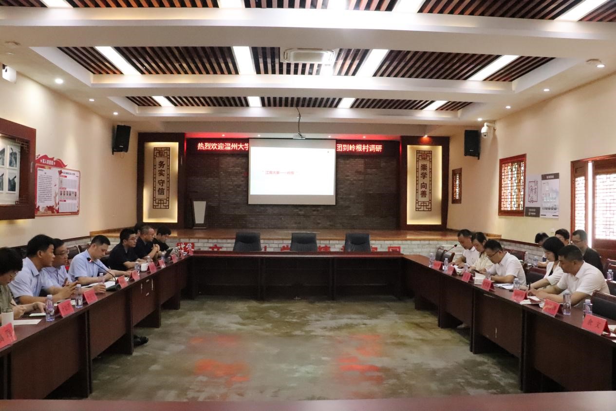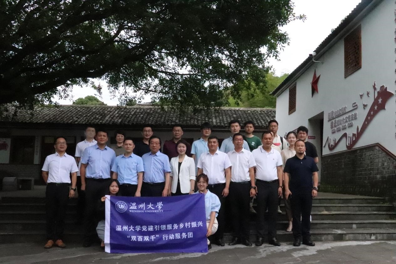 为深入贯彻习近平总书记对浙江“千万工程”的重要指示批示精神,落实中央、省委、市委农村工作会议精神,聚焦温州市党建引领乡村连片提升“六大行动”,促进温州高校助力乡村振兴、助力共同富裕迈上新台阶。6月20日,万象城awc官网登录入口副校长蔡曙光带队“双百双千”万象城awc官网登录入口服务团赴平阳县鳌江镇岭根村开展项目对接调研,平阳县政府副县长屠霁霞、鳌江镇镇长杨启杰、县委组织部副部长余毅、万象城awc官网登录入口机关党委书记组织部副部长李祖祥、万象城awc官网登录入口党委书记叶正飞等陪同调研。