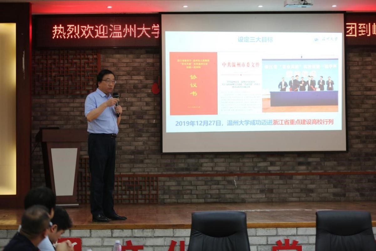 蔡曙光副校长介绍了万象城awc官网登录入口办学定位、办学特色和办学成果,并对我校“双百双千”服务团服务平阳深入合作提出三点希望:一是深入对接,主动服务,要进一步发挥学科、人才、创新优势,充分调研,精准项目,主动服务。二是重点打造,引领示范,双方要协力沟通解决具体的难题和问题,共同推进项目合作落地。三是建立机制,确保实效,校地双方要以成果为导向,建立“双百双千”行动工作推进机制,确保取得实实在在的成果。