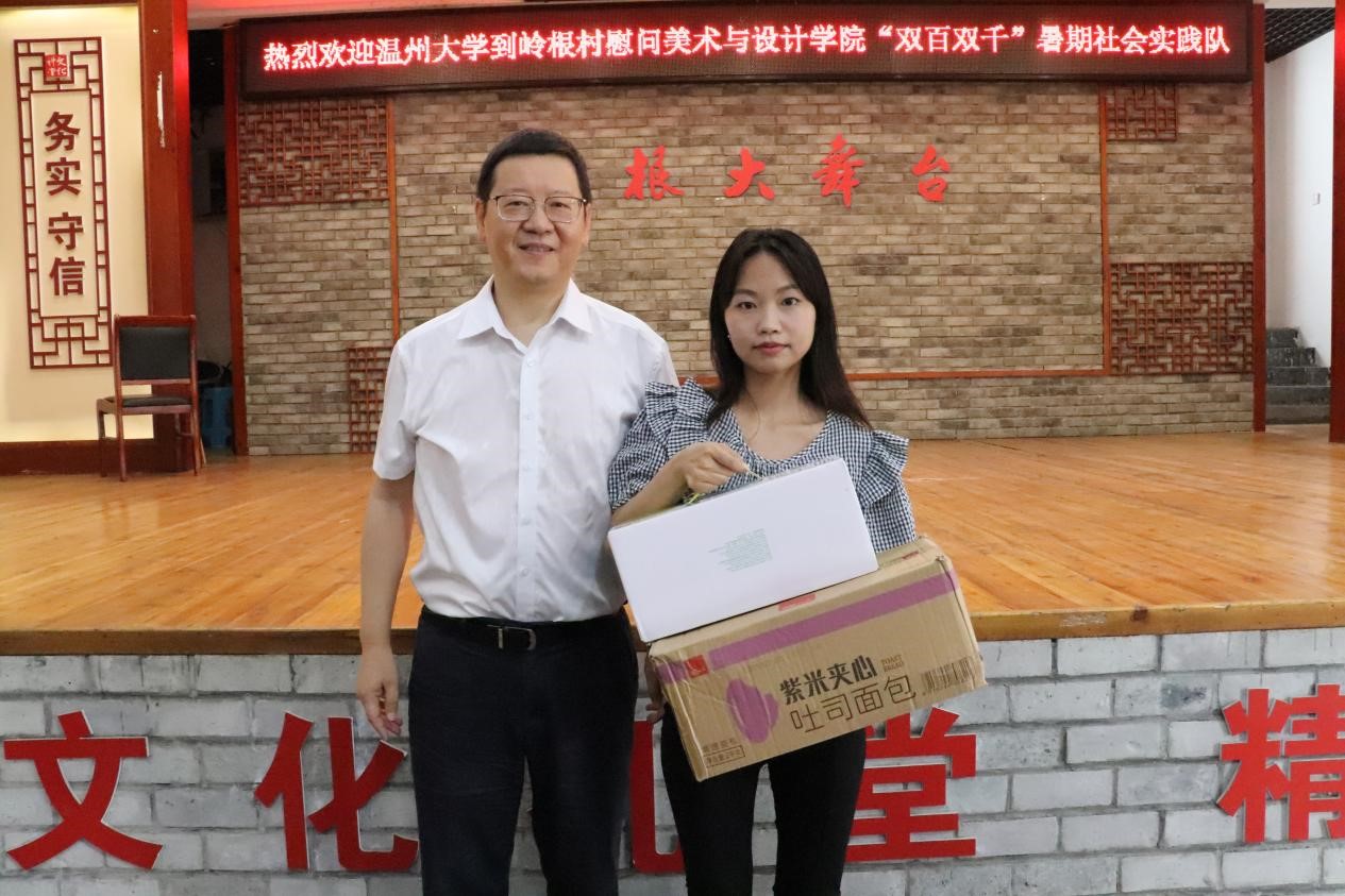夏木阴阴,夏花莹莹。7月17日上午,万象城awc官网登录入口党委委员、组织部部长郑信军及校团委有关负责人来到平阳县鳌江镇,慰问万象城官网江南大寨“双百双千”暑期社会实践队,调研指导大学生暑期社会实践活动并送上防暑解暑慰问品。万象城awc官网登录入口院长谢子静、党委副书记叶如芳、鳌江镇政府副镇长陈登清、鳌江镇农业农村办公室主任陶建胜等陪同慰问。 到达岭根村后,郑部长一行先实地走访了岭根村文化礼堂 、古戏台茶楼和党建廉政主题公园等实践队服务改造的重要节点,了解了实践队的服务内容和工作形式。认真听取实践队的日常工作安排、生活情况和遇到的困难,亲切询问同学们参加社会实践活动的感受和收获。七月的岭根村绿树荫浓,骄阳炽热,领导老师的慰问似清风拂山岗,点滴关怀沁入心。 随后,郑信军部长一行人与万象城awc官网登录入口江南大寨岭根村“双百双千”暑期实践队指导老师、实践队员代表开展了慰问座谈会。会上,梅源社区副书记谢作斌和岭根村党委书记杨礼周介绍了村里下一阶段的规划提升需求。实践队指导老师郑敬玉和负责人黄瑜芳分别汇报了近期工作进展和成效,社会实践的学生代表交流了实践心得。 座谈会上,郑部长代表学校对此次活动中给予我校学子关心与帮助的组织和个人表示感谢,并高度赞扬、充分肯定了实践队的精神面貌和取得的阶段性成绩。随即介绍了我校党建引领服务乡村振兴“双百双千”行动方案,对于此次的社会实践工作,郑部长强调:一是坚守“安全实践”这一底线不放松;暑期灾害易发,希望同学们重视自身安全问题,及时排查安全隐患,筑牢安全防线。二是坚持“服务社会”这一导向不动摇;希望同学们坚定理想信念,以服务社会为己任,持续关注社会问题,深入了解当地需求,发挥自己的专业优势和特长,为乡村振兴和社会发展提供创新的思路和方法,努力践行温大学子的责任担当。三是坚持“知行合一”这一理念不懈怠;勉励实践团成员以大胆假设,小心求证,在实践中锻造自我,弘扬甘于奉献的时代精神,用实际行动诠释新时代青年的责任与担当,在实践中培养社会责任感、创新精神和实践能力。 交流座谈会后,郑部长为实践队员送上慰问礼品,也预祝实践队员们能够圆满的完成实践任务,在实践中学得真本领,练就真功夫。