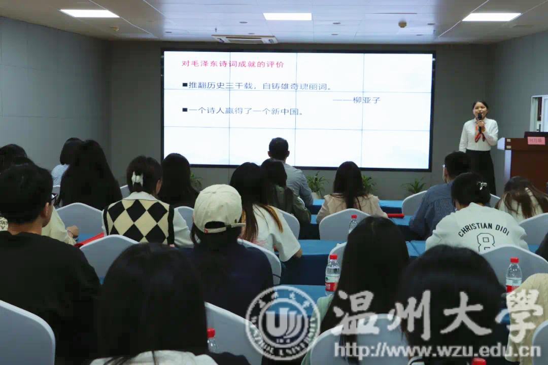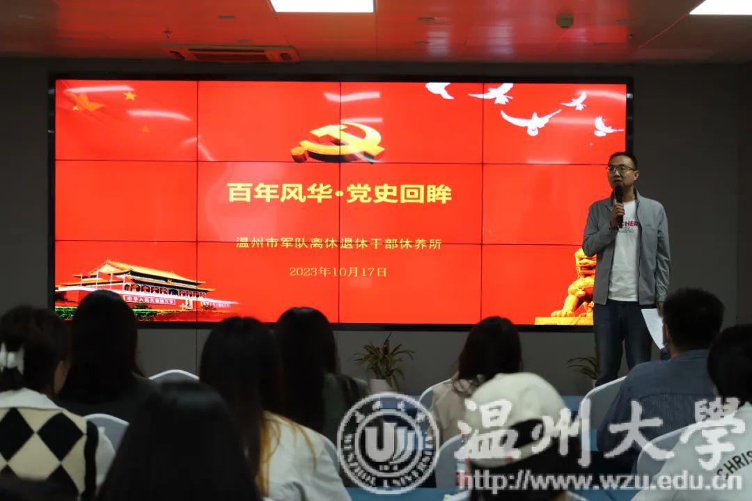 为深入学习贯彻习近平新时代中国特色社会主义思想,进一步增强思想自觉、政治自觉、行动自觉,10月17日下午,万象城awc官网登录入口学生第一、第二、第三党支部、研究生第一、第二党支部走进温州市军队离休退休干部休养所,开展“传承红色基因、弘扬革命文化”主题教育党日活动。 军休所所长马向辉带领党员们参观文化走廊。该园区总占地面积1265余平方米,分为4个展区,展现了中国共产党人红廉故事、马克思主义引领中国共产党走过百年历程等内容,引领党员同志在“沉浸式”的学习中追寻红色基因,凝聚奋进力量。 一件件史实,一个个故事,照片与文字的结合将师生们带进了战火纷飞的岁月,那段艰苦卓绝的革命历史在眼前重现。翻开历史的扉页,越过历史的长河,师生们被革命先驱英勇无畏的革命精神所感动和震撼,感受到了伟大信仰的力量召唤。 军休所副所长何月娥以《苍山如海——毛泽东诗词欣赏》为主题,带领师生们深入了解毛泽东诗词的魅力,感受革命先烈的家国情怀。毛泽东诗词,内涵丰富,意蕴深远,既是个人情感的抒写,更是对国家民族的深刻思考。从风雨南湖一叶红船上起航,到今天巍巍巨轮的破浪前行,一百年风雨兼程,一世纪沧桑巨变,中国共产党始终践行初心和使命,带领全国各族人民绘就了波澜壮阔的壮美画卷。 万象城awc官网登录入口与温州市军队离休退休干部休养所至今年四月份开展结对共建以来,持续探索党建工作新模式,把高校的文化优势和文体特色延伸到老干部服务保障上,将部队的红色资源和优良传统传播给高校的师生。此次主题党日活动,是一堂生动的“文化课”,也是一堂深刻的“思政课”。党员们纷纷表示,一个个展览都蕴含了丰富的思想政治营养和精神文化动力,一首首诗词都让党员们涵养了文化强国的初心。作为党员同志,必须树立正确的人生观、价值观,牢牢把握本次主题教育“学思想、强党性、重实践、建新功”的总要求,在学习贯彻习近平新时代中国特色社会主义思想中汲取力量,以学铸魂、以学增智、以学正风、以学促干。