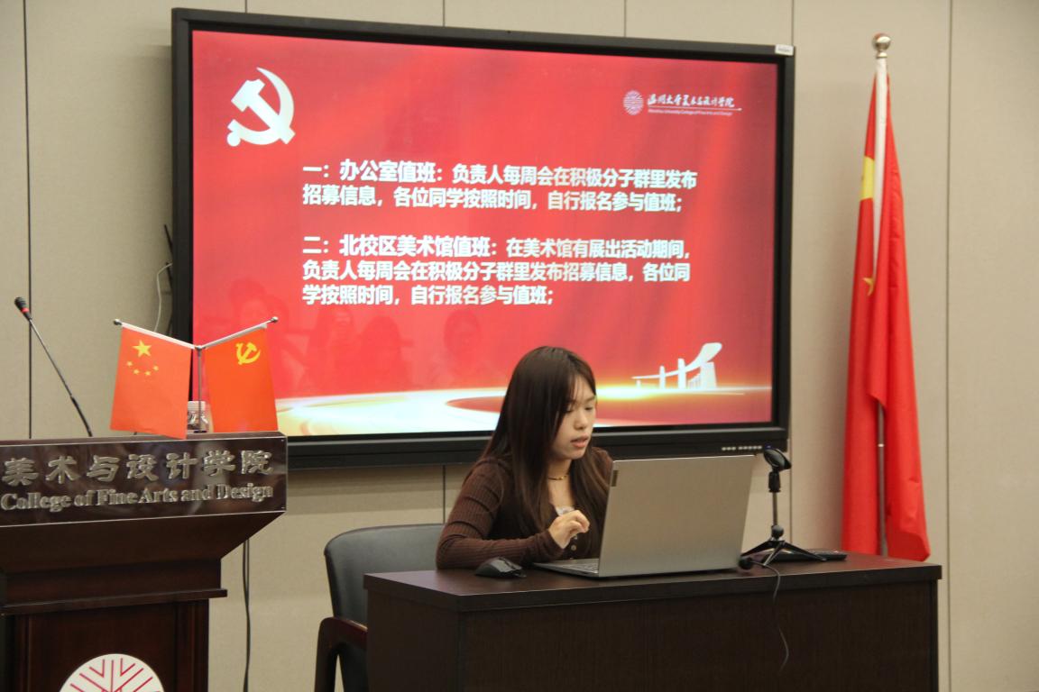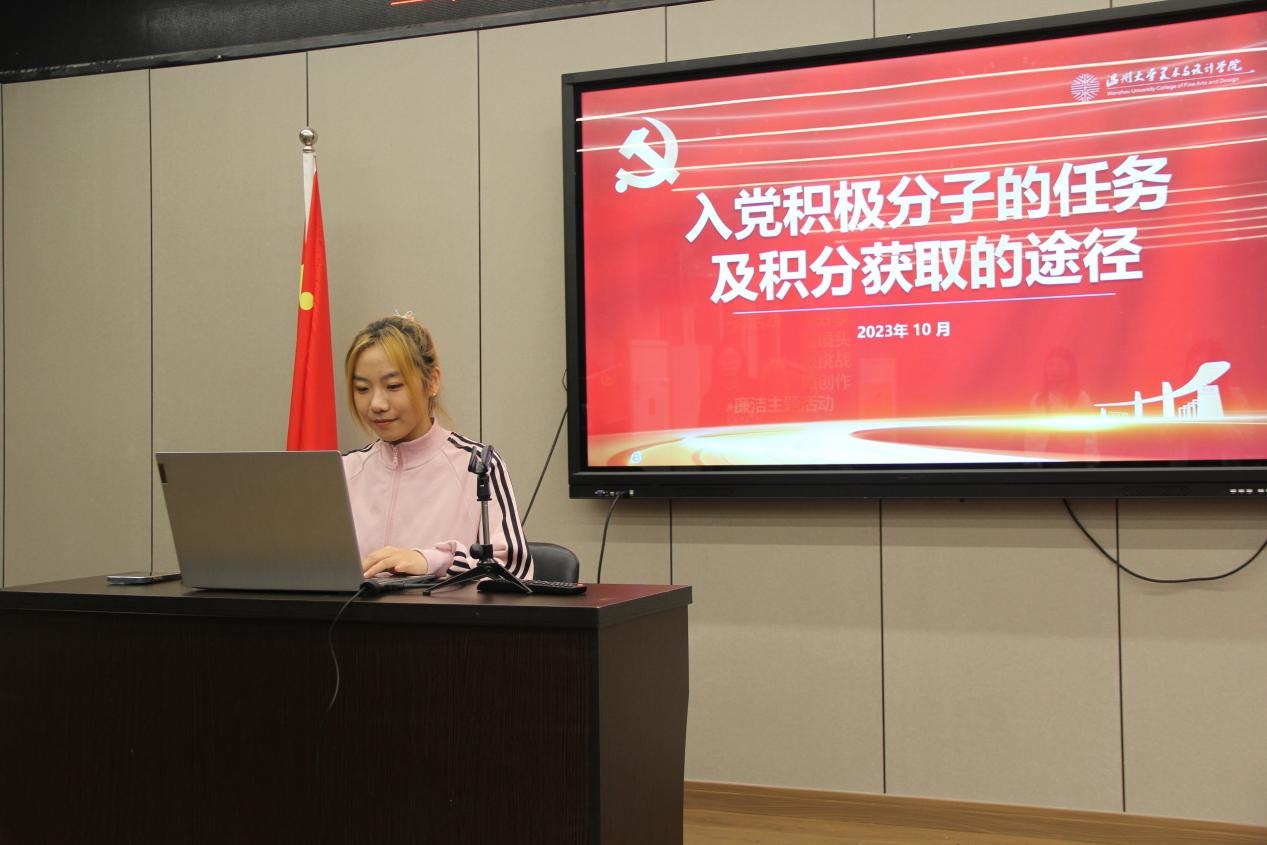 会议首先由党员服务中心综合管理部张鑫妍同志介绍入党积极分子的考核管理方法。接着由党员服务中心义工活动部部长蔡美智同志向入党积极分子细致地解读入党积极分子的培养教育内容与相关内容填写。最后由党员发展部的部长周祎婧同志介绍入党积极分子的培养教育与发展流程。通过本次对积极分子的培训教育,不仅有效地传达了身为入党积极分子应增进“致广大而尽精微”的实干精神,还勉励各入党积极分子争创“积跬步以至千里”的实干业绩。