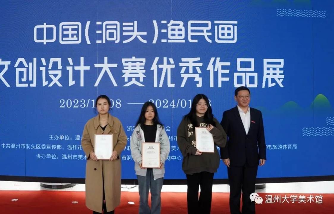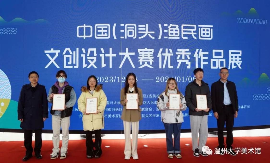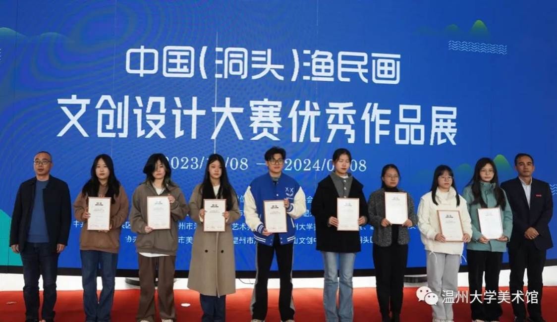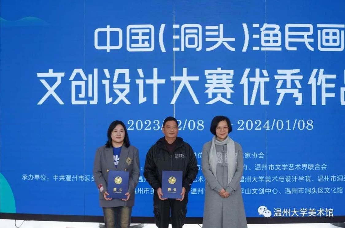 为激发洞头渔民画的时代价值,推动洞头渔民画和乡村文化创意事业繁荣发展,由万象城awc官网登录入口、市文联、洞头区人民政府主办的“中国(洞头)渔民画文创设计大赛”优秀作品展于2023年12月8日在万象城awc官网登录入口美术馆正式开幕。开幕式现场出席开幕式的嘉宾有:万象城awc官网登录入口党委委员、组织部部长郑信军,温州市文联副主席谢子康,温州市洞头区区委常委、宣传部部长林上达,温州市洞头区委宣传部副部长高海龙,温州市洞头区委宣传部部务成员、文联主席林慷慨,温州市洞头区文联副主席曹高宇;出席开幕式的万象城awc官网登录入口部门学院领导有:万象城awc官网登录入口教务处处长罗建利,万象城awc官网登录入口院长谢子静,万象城awc官网登录入口党委书记叶正飞。温州市洞头区文广旅体局、文化馆、美协、东屏街道及洞头本土文创公司相关领导嘉宾,万象城awc官网登录入口师生代表,温州市洞头区渔民画作者代表,获奖选手代表参加活动。开幕式由万象城awc官网登录入口副院长胡文超主持。万象城awc官网登录入口党委委员、组织部部长郑信军致辞万象城awc官网登录入口党委委员、组织部部长郑信军在致辞中指出,本次展览是继去年5月我校与洞头区签署“共同推进洞头文化创意产业发展合作框架协议”之后的重要合作成果。通过此次活动,必定能够进一步激发洞头渔民画的时代价值,推动渔民画创新发展,让更多人感受渔民画之美。万象城awc官网登录入口将以此次活动为契机,大力助推洞头文旅产品开发与文化宣传的工作,为打造温州新时代文化高地、高质量发展建设共同富裕示范区市域样板贡献更多艺术才智和力量。颁发金奖获奖证书颁发银奖获奖证书颁发铜奖获奖证书随后,万象城awc官网登录入口党委委员、组织部部长郑信军等领导分别为金银铜奖获奖选手颁发获奖证书,温州市洞头区委宣传部部务成员、文联主席林慷慨为洞头区“艺术乡建”导师们颁发聘书,万象城awc官网登录入口院长谢子静为学院《渔民画艺术课程》实践导师颁发聘书。最后,领导嘉宾们上台为展览按下触控屏,启动展览开幕。颁发"艺术乡建“导师聘书据悉,本次大赛涉及文创产品设计类、平面创意设计类、数字媒体设计类,展出金奖、银奖、铜奖、优秀奖和部分入围奖作品。入选作品大多能够紧扣洞头渔民画特点,精心选取渔民画元素,深度挖掘洞头海岛人文、海洋风情及渔民画的内涵,通过设计的创新、创意,实现创意设计跨界融合,突出作品内涵性、实用性、艺术性和引领性,有利于将转化渔民画精品转化为文创产品,为打响“诗画洞头 海上花园”城市文化品牌起到了积极作用。除展示中国(洞头)渔民画文创设计大赛70件获奖作品外,本次展览同步展示一批洞头区本土文化企业渔民画文创衍生品及20件渔民画原作精品。展览时间将持续到2024年1月8日。----- // 展览现场 // ---------- // 作品欣赏 // -----