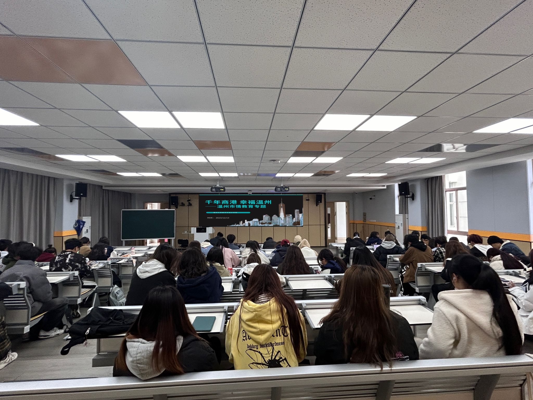 4. 课程内容:详细介绍了温州地区“千年商港”的文化渊源以及地区的发展态势,帮助学生全面了解温州高校大学生招引计划、创新创业等政策,包括就业、社保、交通、住宿等补贴情况,更好的帮助学生提前做好自己未来的职业规划。课程旨在让师生更好地了解温州、认识温州、融入温州、爱上温州,从而激发“留在温州”、“创在温州”的内在动力,为温州经济建设发展添智助力。