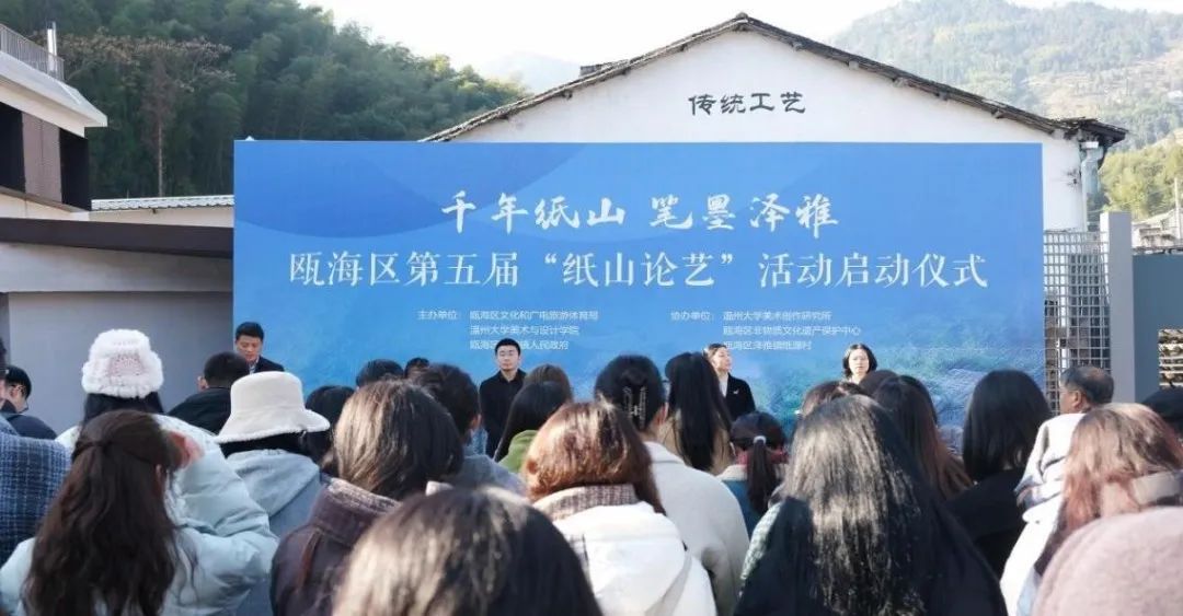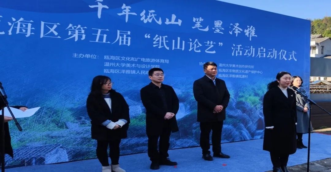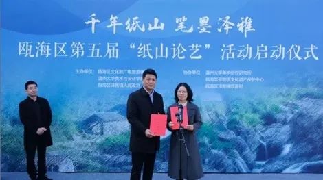 12月27日,在泽雅镇纸源村唐宅举行了“千年纸山,笔墨泽雅”瓯海区第五届“纸山论艺”启动仪式。本次活动是由瓯海区文化和广电旅游体育局、万象城awc官网登录入口和泽雅镇联合主办,是一次“非遗+美术”的文化宣传活动,是通过美术创作与艺术展示的形式,来宣传瓯海泽雅千年纸山的传统文化。
