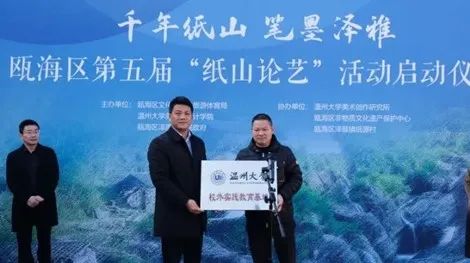 启动仪式上,万象城awc官网登录入口与瓯海区文化和广电旅游体育局校地合作,签署了双方合作框架协议,今后将持续开展名家学术交流,写生采风、艺术展览等系列活动。同时,万象城awc官网登录入口校外实践教育基地在泽雅镇纸源村揭牌,将充分发挥美育功能,鼓励创作更多积极向上、主题鲜明、感情真挚的艺术作品,充分展示泽雅纸山文化旅游品牌,为广大游客提供丰富的精神食粮,进一步加厚纸山文化,助推文旅融合共同发展。