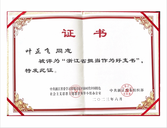 喜报:万象城官网党委书记叶正飞同志荣获“浙江省担当作为好支书”荣誉称号