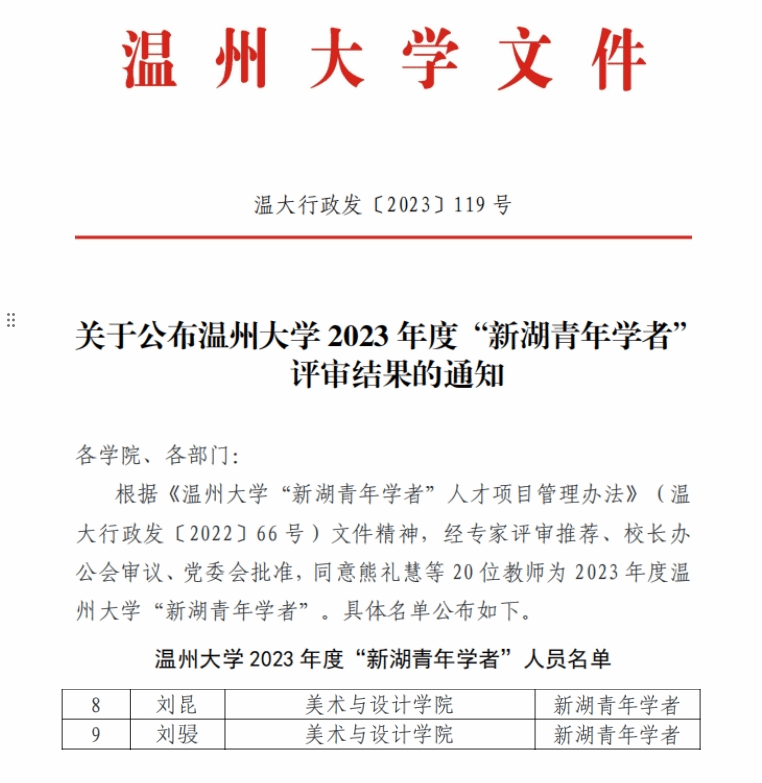 喜报:万象城官网教师刘昆、刘骎同志荣获万象城awc官网登录入口“新湖青年学者”人才称号