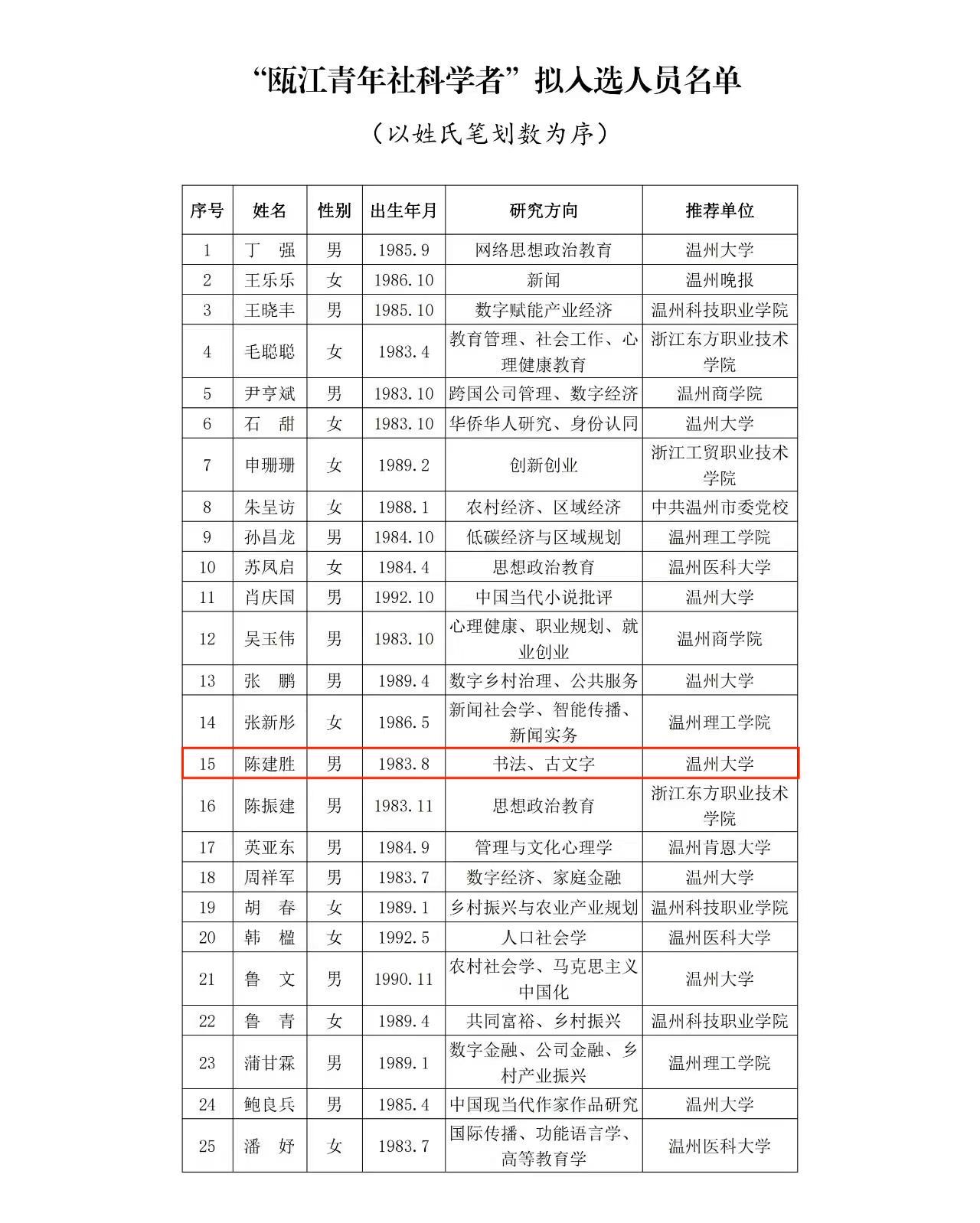 喜报:万象城官网教师陈建胜同志荣获温州市“瓯江青年社科学者”人才称号