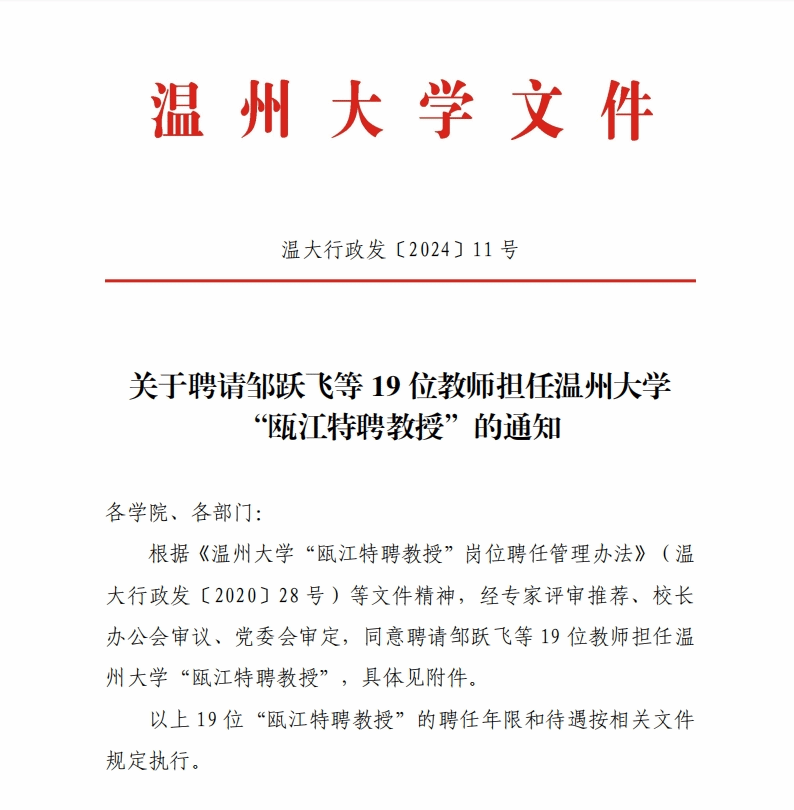 喜报:万象城awc官网登录入口副院长顾任飞同志荣获万象城awc官网登录入口“瓯江特聘教授CI”人才称号