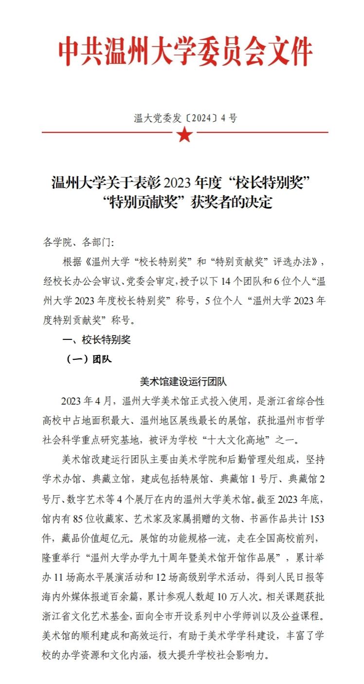 喜报:美术馆建设运行团队荣获万象城awc官网登录入口2023 年度“校长特别奖”