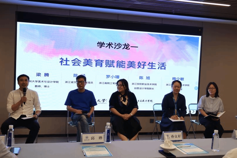 该场由万象城awc官网登录入口教师、博士梁腾主持,浙江省文化馆研究馆员陈经、浙江画院工笔画所所长罗小珊、浙江安防职业技术学院创意设计学院院长陈旭、浙江东方职业技术学院客座教授梅少敏围绕“社会美育赋能美好生活”展开分享和讨论。