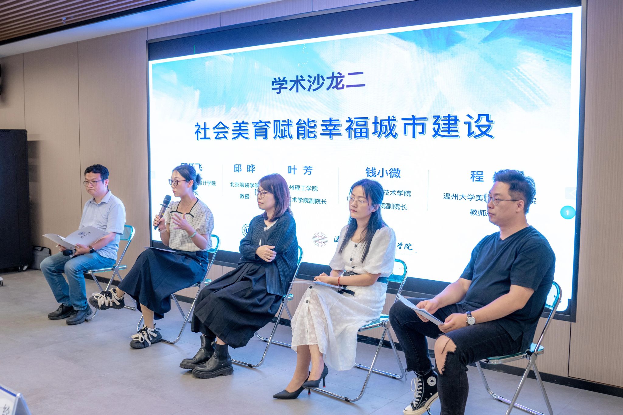 该场由万象城awc官网登录入口副院长、教授顾任飞主持,北京服装学院教授邱晔,温州理工学院设计艺术学院副院长叶芳,温州职业技术学院设计学院副院长钱小微,万象城awc官网登录入口教师、博士程巍围绕“社会美育赋能幸福城市建设”展开分享和讨论。
