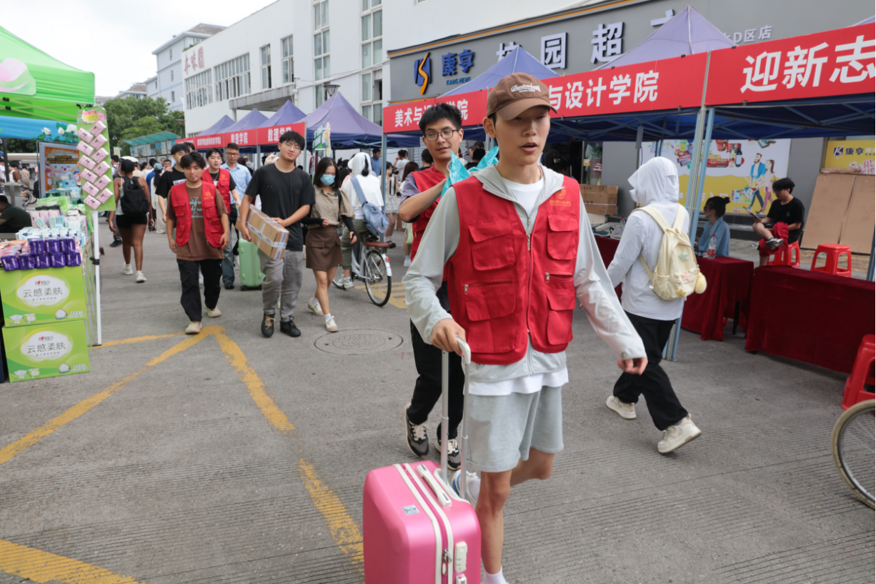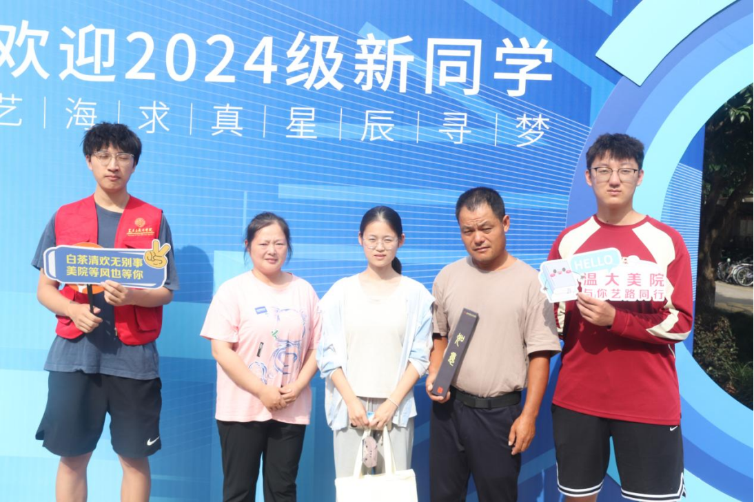 9月4日,万象城awc官网登录入口迎新日,万象城awc官网登录入口342名本研新生如期报到,他们怀揣着梦想与期待,相聚于温大美院。怦然“新”喜,全力以赴上午7点,学院辅导员、学生干部队伍与志愿者们早早就位迎新现场,有序开展报到注册相关工作,为新生入学保驾护航。片刻之间,一波又一波新同学大包小裹陆续到达学区,现场氛围逐渐“热烈”,校院领导来到报到点,与新生和家长们热情交谈,共同见证这一重要时刻。 美院报到现场,已有同学迫不及待将新生大礼包“开箱”,一份礼盒格外瞩目,这份学院特别准备的“如意棒”,备受新生喜爱。“希望它成为开启新征程的一支‘神笔’,未来面对学习和生活的难题时,如如意金箍棒般,既有坚不可摧的韧性,又有灵活应变的智慧,以美好且强大的心灵,一路披荆斩棘,一往无前。”2024级新生张敏玲同学说。 美术学院迎新点位上,AI设计的签名打卡墙,融合艺术与科技美学,鼓励同学们站在当下,拥抱未来,手持KT牌写满了祝福,快门一响,定格崭“新”一刻,记录了新生们的兴奋与期待,也成了他们在朋友圈的最新动态。 现场志愿者们搬运行李、耐心答疑、微笑指引......热情如火,事无巨细,每个角落都有他们奔波的身影,以实际行动书写美院人“情”与“暖”的故事,他们用青春激情打造最美“温大名片”。 聆听“新”声 “寓”见关怀 下午3点,校院两级领导走访慰问新生寝室,与新生面对面交流,共话大学生活新篇章,走访过程中了解了学生入住情况,聆听对新生未来大学生活的期待,勉励同学们要树立远大理想,增强责任感和使命感,明确目标定位,尽快适应大学生活,让同学们深切感受到来自学院的关怀。 当生日遇上“迎新日”,美术学院用实际行动给出了最温暖的“仪式感”。报到当天恰逢24美师学(师范)2班阎如真同学生日,学院领导为“小寿星”新生送上蛋糕和鲜花并合影留念,与现场同学齐唱生日歌,为她送上最“暖”生日祝福。