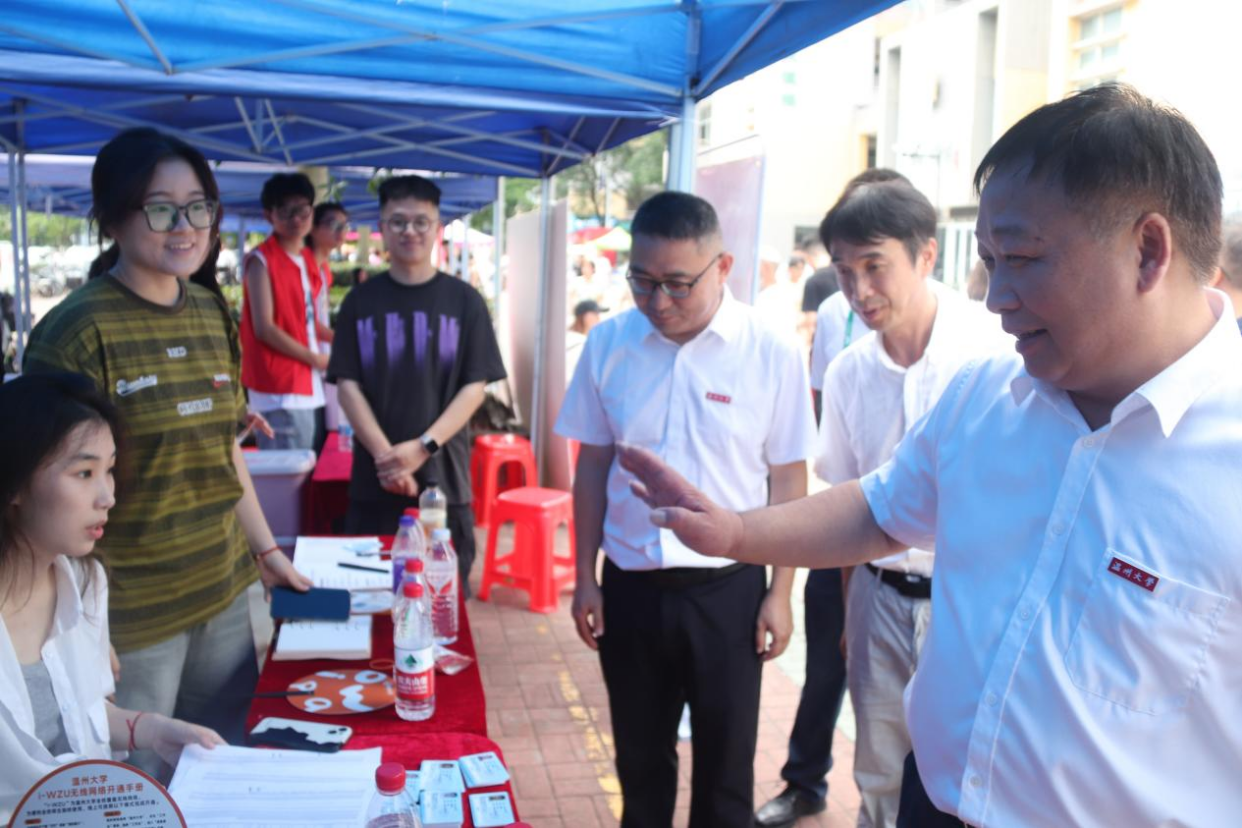 现场志愿者们搬运行李、耐心答疑、微笑指引......热情如火,事无巨细,每个角落都有他们奔波的身影,以实际行动书写美院人“情”与“暖”的故事,他们用青春激情打造最美“温大名片”。