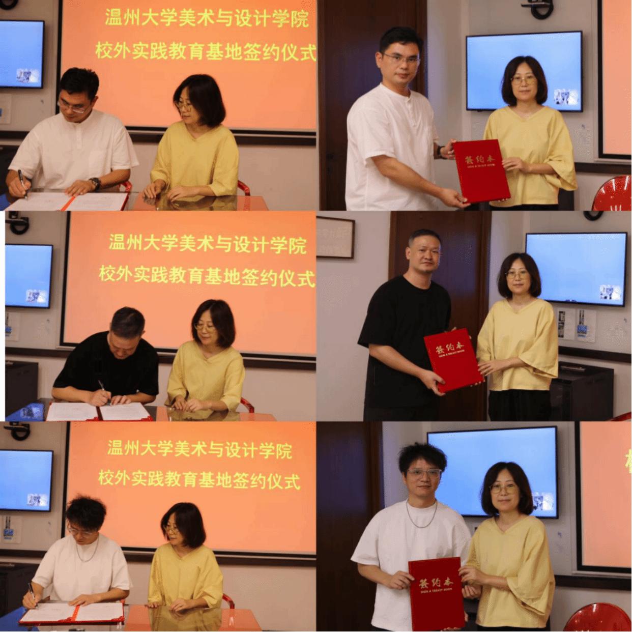 走访期间,学院还与上宸工程设计集团有限公司温州分公司举行了就业实习基地授牌仪式,与上宸工程设计集团有限公司温州分公司、浙江成仕间装饰设计有限公司以及浙江瑞图琅社空间设计有限公司举行了万象城awc官网登录入口实践教育基地签约仪式。