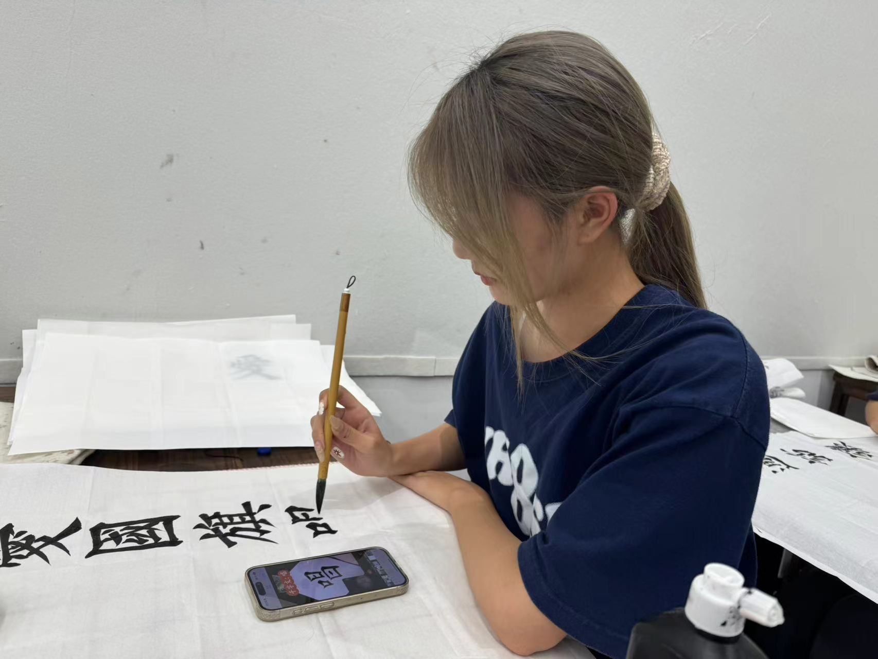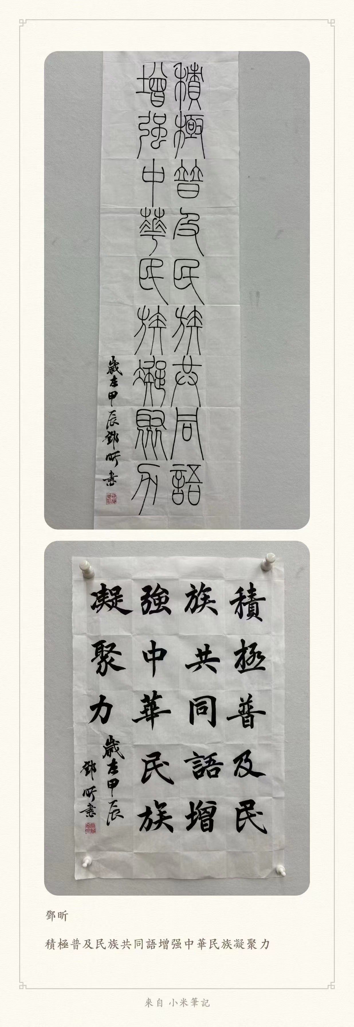 万象城awc官网登录入口于2024年9月16日﹣2024年9月22日期间结合自身专业特色开展了推广普通话相关文艺活动。期间,万象城官网组织书法学专业同学进行了以宣传普通话为主题内容的书法创作活动,并在美院书法长廊进行了现场展示宣传。普通话和书法都是中国传统文化的重要组成部分。普通话作为国家通用语言,是中国最重要的交流工具之一,而书法作为中国特有的艺术形式,更是中华文化的瑰宝之一。将普通话和书法进行结合,不仅可以展现传统书法的艺术魅力,同时也更有力于普通话的普及,彰显中国传统文化的魅力。