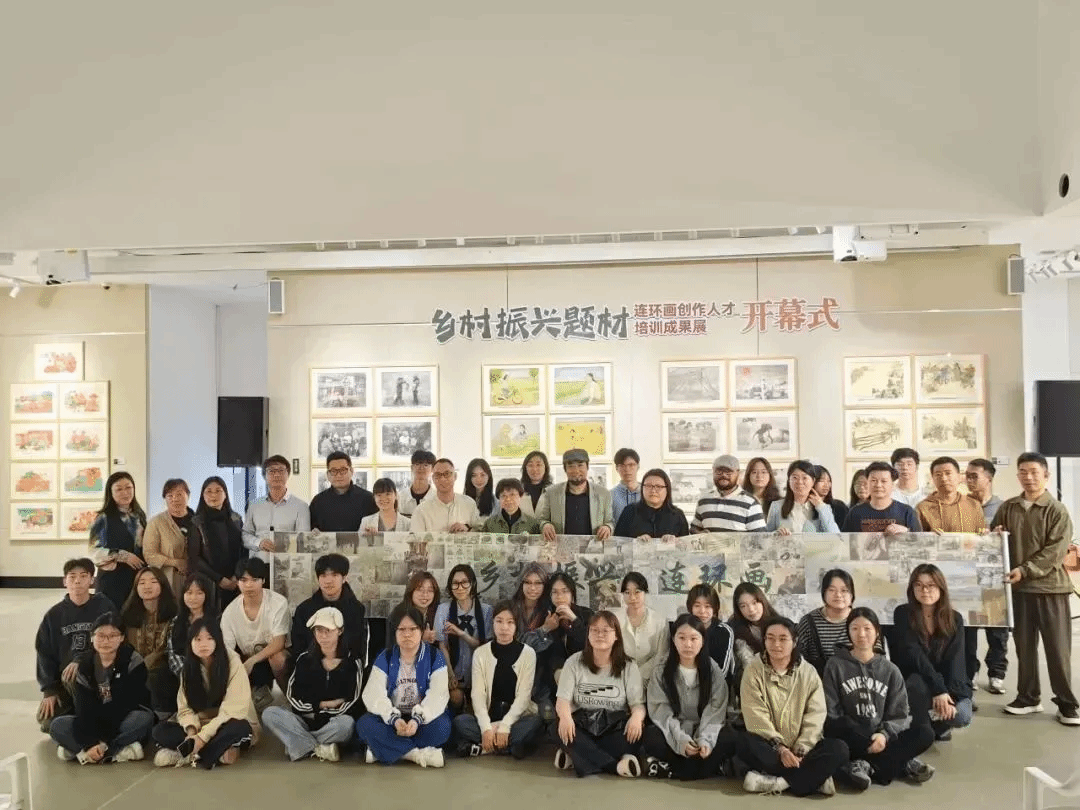 图为浙江传媒学院动画与数字艺术学院举办“乡村振兴题材连环画创作人才培训”成果展在乡村美术馆巡回展览。