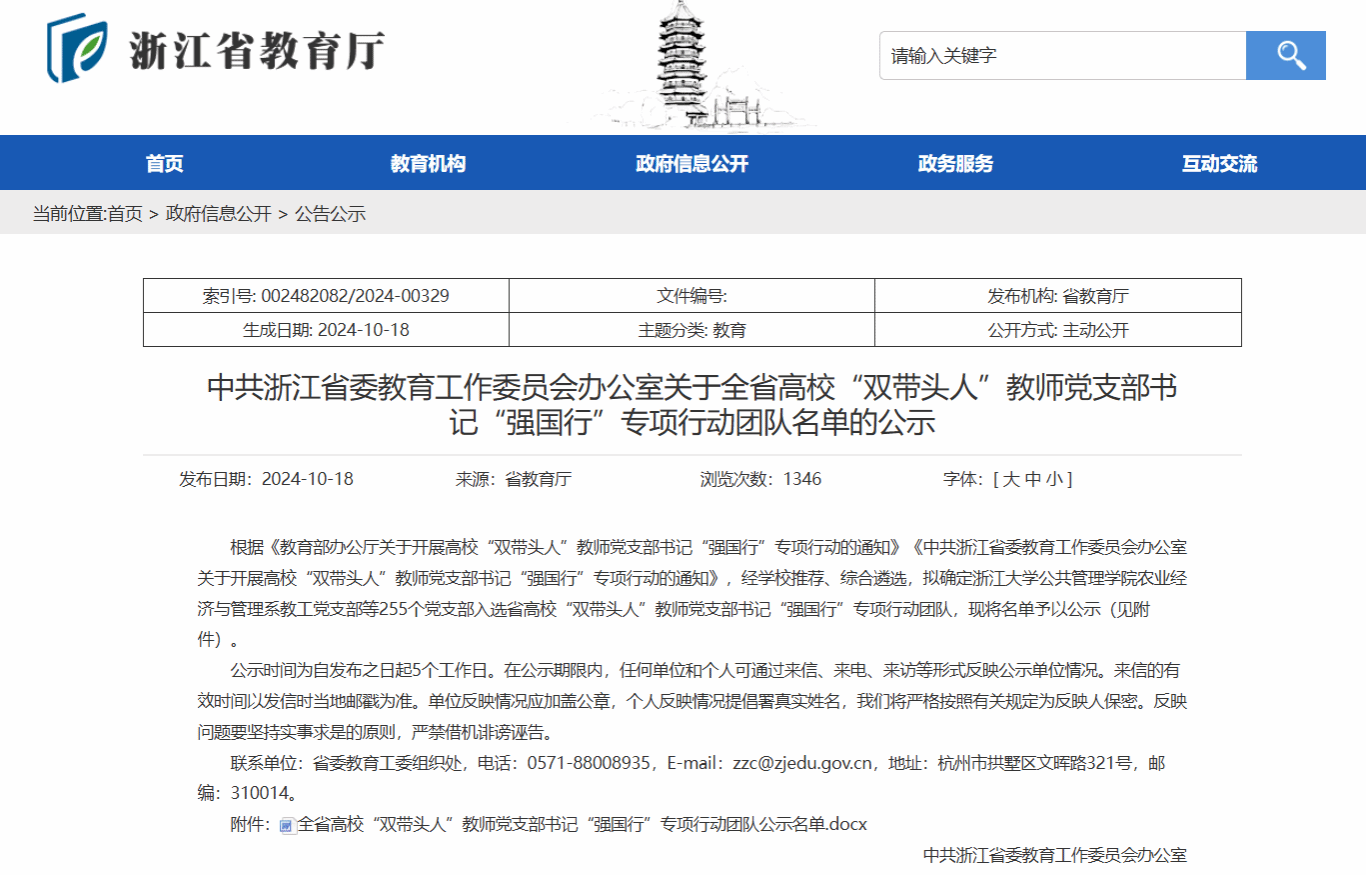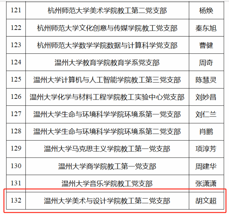 近日,浙江省教育厅网站发布《中共浙江省委教育工作委员会办公室关于全省高校“双带头人”教师党支部书记“强国行”专项行动团队名单的公示》。经学校推荐、综合遴选,万象城awc官网登录入口教工第二党支部等255个党支部入选省高校“双带头人”教师党支部书记“强国行”专项行动团队。