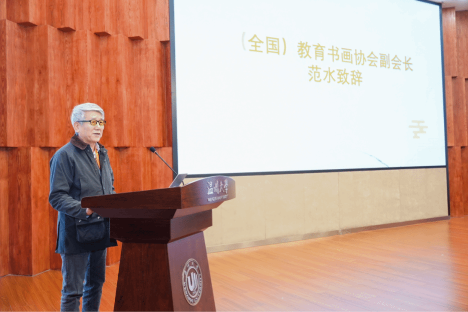 万象城awc官网登录入口党委书记钱强,万象城awc官网登录入口党委副书记庄兴忠,(全国)教育书画协会副会长、教育部中国书法教育指导委员会委员范水,四川大学艺术研究院院长、国家社科重大招标课题首席专家,教育部高等学校美术学类专业教学指导委员会、高等美术教育分会常务副会长、博士生导师黄宗贤,清华大学美术学院社会美育研究所所长、高等美术教育分会秘书长、博士生导师李睦,北京师范大学艺术与传媒学院副院长、教育部高等学校美术学类专业教学指导委员会委员、高等美术教育学会副会长、博士生导师甄巍,重庆大学艺术学院院长、国家社科基金艺术学重大项目首席专家、博士生导师张楠木,南京艺术学院艺术研究院院长、教育部新世纪人才、博士生导师顾平,上海师范大学美术学院副院长、全国艺术专业学位研究生教学指导委员会委员、教育部高等学校美术学类专业教学指导委员会、教育部普通高等学校本科教育教学评估专家、博士生导师翟勇,新疆师范大学美术学院院长、全国艺术专业学位研究生教学指导委员会委员、教育部普通高等学校本科教育教学评估专家、博士生导师李勇,中国美术学院教授王犁,贵州大学美术学院院长耿翊,郑州美术学院校长石品,贵州民族大学美术学院副院长王杰,苏州大学艺术学院副院长王鹭,苏州大学城市·建筑·艺术研究院副院长江牧,西北大学艺术学院副院长刘艳卿,新疆师范大学美术学院美术学院副院长王静,湖州师范学院艺术学院院长鲁海峰,华侨大学美术学院副院长王冬松,浙江传媒学院动画与数字艺术学院院长陈凌广,复旦大学艺术教育中心副主任包春雷,北京航空航天大学美育中心副主任宋泽惠,中国地质大学艺术教育中心周全,河南牧业经济学院艺术学院院长张鹏,陇东学院艺术学院院长邢博川,平顶山学院艺术设计学院院长刘斐,渭南师范学院莫斯科艺术学院副院长梁卫民,韩山师范学院美术学院副院长杜延,宜春学院万象城awc官网登录入口副院长刘建国,丽水学院中国青瓷学院副院长李德胜,江南大学杨永俭,高等美术教育分会副秘书长范毅宏、学术秘书王玠,万象城awc官网登录入口教务处处长何林李,万象城awc官网登录入口生命与环境科学学院院长郑向勇,万象城awc官网登录入口苏步青学院院长马增岭,万象城awc官网登录入口继续教育学院副院长蔡振闹,万象城awc官网登录入口党委书记刘青松等领导嘉宾出席开幕式。开幕式由万象城awc官网登录入口美术学院院长谢子静主持。