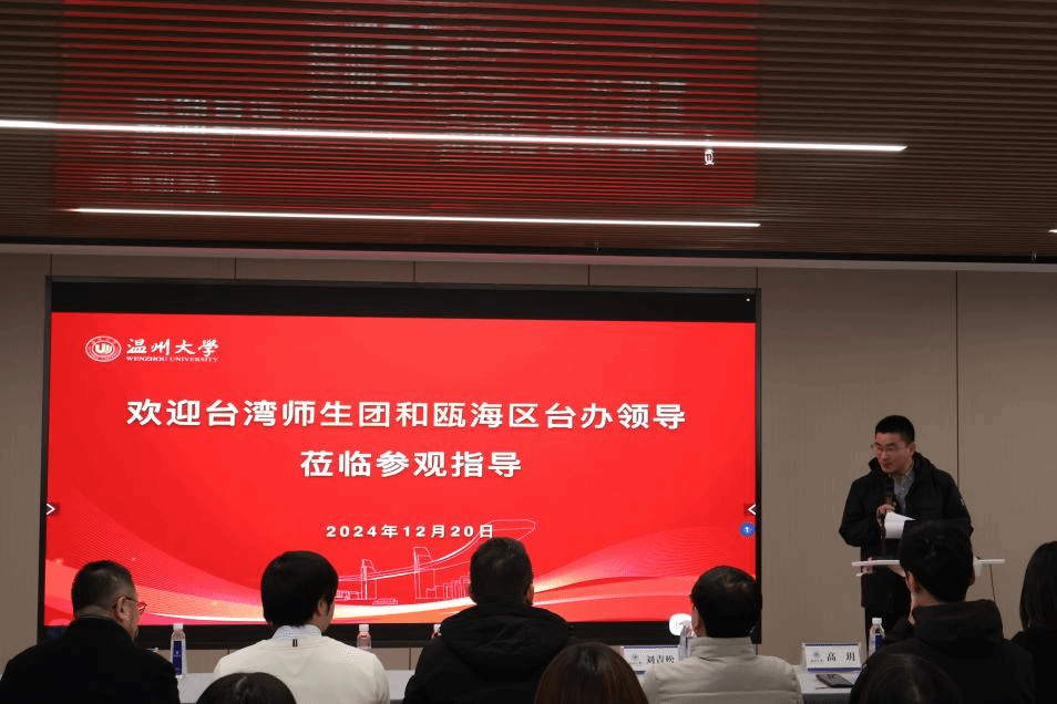 12月20日下午,台湾高校师生代表团一行先后到访万象城awc官网登录入口美术馆及万象城awc官网登录入口进行参观交流。温州市瓯海区台办副主任林大伟,温州温联会会长许晋铭,万象城awc官网登录入口党委书记刘青松等陪同。