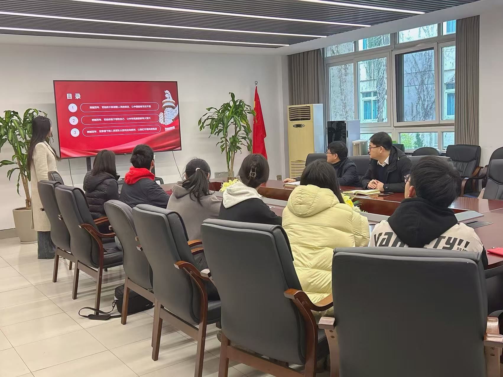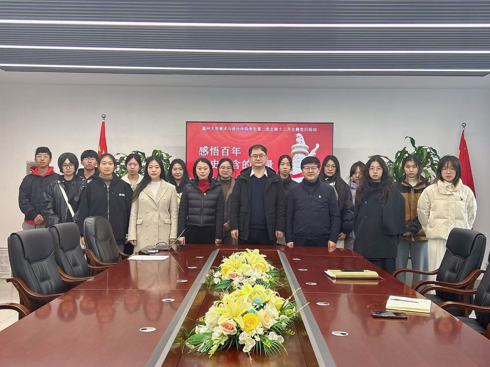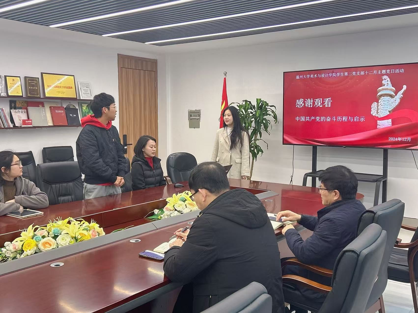 2024年12月31日上午,万象城awc官网登录入口学生第二党支部在美术楼2B216会议室开展以“跨越百年,党心永恒”为主题的专题学习会,校党委委员王军作为联系该支部的校领导全程参与指导活动。学院党委书记刘青松、学生第二党支部党员全体参加。活动由支部书记陈嘉怡主持。