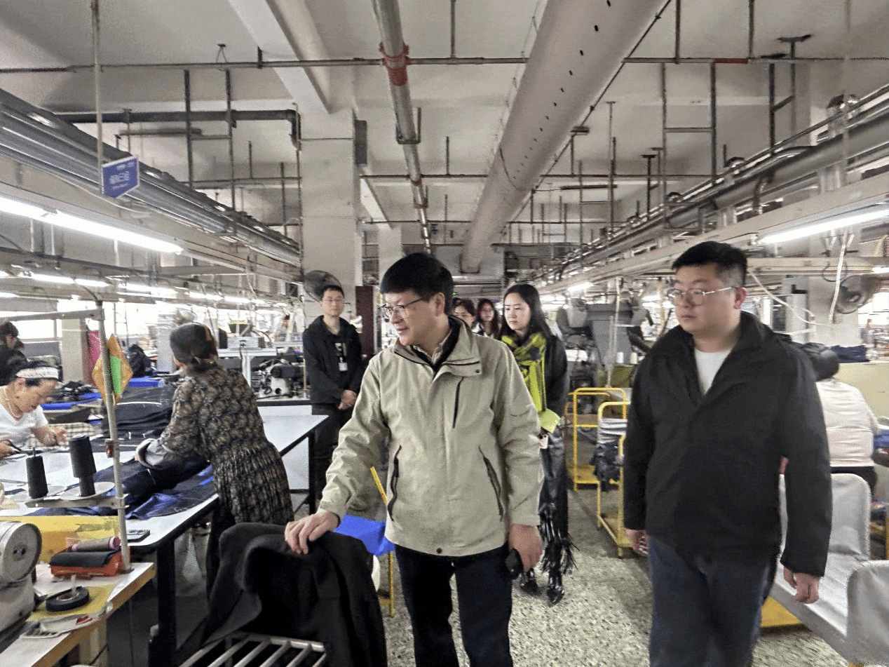 在东盟集团,师生在企业有关负责人的带领下,参观了企业产品展厅、办公区、服装样衣区、生产车间等,了解企业的发展概况、主要产品、市场前景和校企合作情况等,并就人才需求、人才培养、学生的实习见习进行交流探讨。东蒙集团人力资源部陈胜部长解答了同学们关于校招考核要求、企业人才培养路径、在校期间如何提升就业竞争力等问题。
