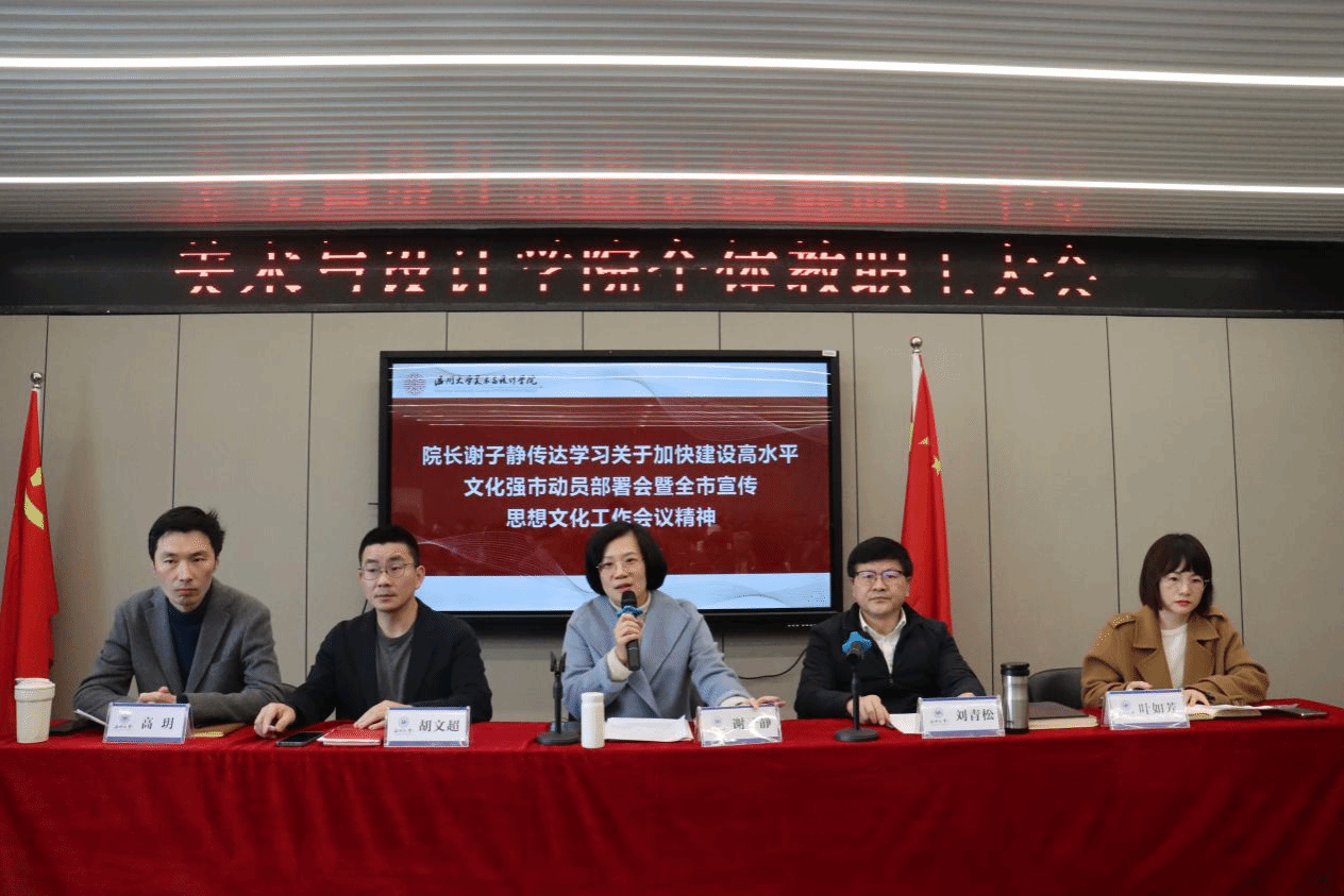 谢子静院长回顾了本学期学院已开展的重点工作,在学校党委的正确引领与大力支持下,全院师生凝心聚力、砥砺奋进,学院在学科科研、人才培养、国际交流与合作、服务地方等诸多方面取得了新的进展和标志性成果。会上,她重点传达学习了关于加快建设高水平文化强市动员部署会暨全市宣传思想文化工作会议精神。会议指出要深学笃行习近平文化思想,深化文化建设“八项工程”,锚定打造“五个城”,以文化建设“八大行动”为总抓手,加快形成十大标志性文化成果,推动温州迈向高水平文化强市。这为万象城awc官网登录入口的发展带来诸多契机与思考,它不仅关乎城市发展,更是学院发挥专业优势,深度参与文化建设的重要机遇。我们应积极开展产学研合作,推动艺术与科技融合,为温州文化强市建设贡献力量,同时也为学院的长远发展开拓新的空间。