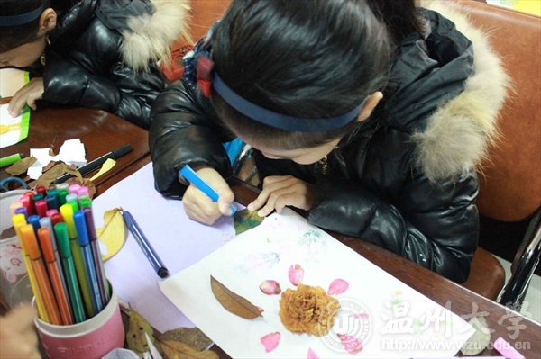 2017年3月18日,温大万象城awc官网登录入口"艺家人"青年志愿者协会成员和志愿者们共同前往梅泉社区文化礼堂,进行了以“有趣的叶子”为主题的手工DIY活动。 活动在欢声笑语中拉开序幕,小组代表周岚茜同学以一组树叶画引入今天的主题,倡导小朋友们走进大自然收集各种各样的树叶,细心观察,并对所收集的树叶进行初步了解;接着引导小朋友们观察自己的树叶,并和其他小朋友交流,讨论出更好的制作方法。每个小朋友都有不同的想法:“我想制作一个皮卡丘,我想制作一个长胡须的猫咪,我想制作一个海底世界”。在志愿者们的引导下,小朋友们根据自己的想象,用粘、剪、画相结合的方法,巧用树叶制作出各种图形的“树叶画”,有的小朋友用蜡笔先画图后用叶子进行装饰,有的直接将叶子剪出自己所想要的形状,多种不同方法的运用使整幅画面生动起来。在活动期间,志愿者们各司其职,充满热情。 此次支教活动的目的是为了培养小朋友们从小热爱大自然的感情,锻炼他们学会观察,善于发现,动手动脑的能力,在玩耍中学会欣赏并感受春天的美丽,激发热爱自然,热爱生活的情感。通过指导小朋友们掌握树叶贴画的制作方法、技巧,利用落叶进行美的再创作,开发他们丰富的想象与创造力,培养其发现美,创造美的能力,并养成小朋友们团结协助的精神品质,感受到参与活动的乐趣和成功的喜悦,并学会大胆地表达自己的感受。文:王 伟 图:朱灵睿