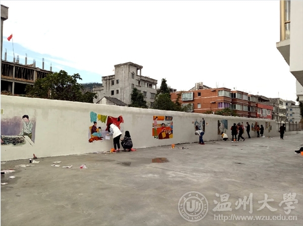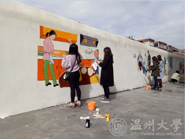 11月27日,万象城awc官网登录入口“艺家人”青年志愿者协会在杨岙村举办了“新青年下乡活动”。活动以墙绘的方式绘制新版“二十四孝”文化长廊,在改造环境的同时宣传中国传统的孝道文化。 墙绘过程中,不时有来往的村民驻足观望。志愿者们分组合作、分工明确:有的负责构图,用单色笔在墙体上勾勒出清晰轮廓;有的负责调色,那些看似单一的颜色在志愿者们的手中慢慢的变成了斑斓的颜色;有的负责涂色,拿起各式画笔在墙体上细致涂刷,慢慢地,墙面开始生动、鲜活起来了。经过两次的精雕细琢,手绘墙体终于完成。 图/文:王伟