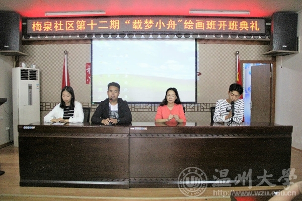 10月16日,万象城awc官网登录入口“艺家人”青年志愿者协会“载梦小舟”梅泉支教活动在梅泉社区正式开班,青协梅泉基地负责人及温大志愿者们参加了开班仪式。