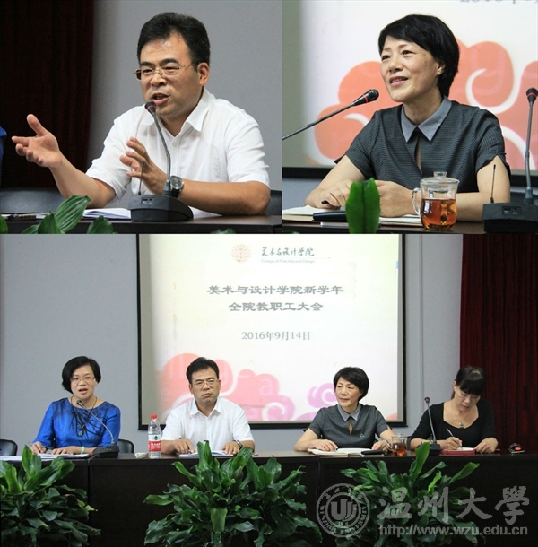 2016年9月14日下午,万象城官网在2B4001召开新学年第一次全体教职工大会。院长李运河、党总支书记张丽萍、副院长谢子静、王薇出席会议,会议由张丽萍主持。会上,张丽萍代表学院领导班子对全体教职工致以教师节、中秋节的问候。她结合党总支建设,围绕本学期重点工作做具体部署。她指出,一要加强基层党组织的建设,继续夯实基层党组织的建设基础,继续坚持党员学习教育,配合学校做好万象城awc官网登录入口第二次党代会的组织筹备工作;二要加强学院文化宣传工作,借助各类平台,结合学院重大活动,全方位宣传学院的建设发展情况,注重宣传的程度和效果;通过师德师风、融艺优品创客空间、学院宣传册和整体形象打造等,继续做好做强学院的品牌特色活动;三要加强学院的凝聚力建设和精神文明建设;四要把握意识形态工作;五要组织开展大学生创新创业教育,充分发挥学院的主导作用,扩大创业教育的受益面,弘扬创新创业精神;六要加强学生思想政治教育和管理,促师风、抓学风;七要重视毕业生和校友工作,重视第三方调查结果,促进调整人才培养方案,不断提高教育教学质量;八要抓好平安校园的建设工作,树立安全高于一切的意识。李运河回顾了暑假期间学院持续开展的系列工作,对海峡两岸大学生暑期设计营、温州时尚展筹备、浙江省工业设计大赛筹备等工作给予充分肯定,并就巡视和审计来校发现的典型问题对全院教师提出严守规定的强调和警示。针对学院在“十三五”期间的发展方向,结合学院的实际建设情况,他提出了几点思考。首先是定位问题,他认为找准定位才能找对方法和出路。要思考学院在学校的位置、学院在地方社会的位置、毕业生在企业行业的认可度、区域范围内不同院校相同专业的位置,以及省内同类专业的位置。同样,要思考专业在本学院的位置以及老师在本专业的位置。明确优势,错位发展,有为才有位。其次,关于学院人才培养目标的定位,他提出“强实践、能创新、富有艺术素养和创业能力的应用型人才”,并就“实践”和“创新”做了详细阐述。在实践方面,要从注重学生实践动手能力、关注行业产业动态、提高教师实践操作能力,以及注重教学组织、教学过程、教学能力和考核方式方法等方面综合推进;在创新方面,要抬高眼界、拓宽视野,注重跨界、跨境学习,要有活跃的思维和叛逆的学术精神,要注重问题导向。第三,在科研方面,既要充分自信,又要有敢于实践的勇气,要在服务地方中凝练课题,在挖掘地方传统文化中研究课题。 谢子静、王薇分别就分管的教学、科研、实验室等工作做了安排和部署。(图/冀千里 文/李丽)